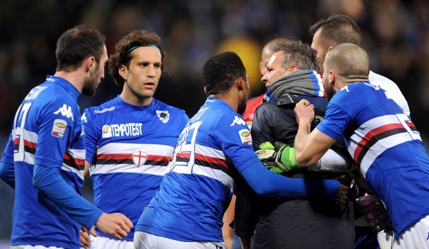 GENOVA – Il derby di Genova รจ appena finito: Sinisa Mihajlovic si avvicina a Vasco Regini e lo prende per il colletto, poi tenta di dargli una specie di buffetto. Alla fine deve intervenire Eto’o per dividere il mister e il compagno di squadra. Ma perchรฉ l’allenatore della Samp ce l’ha col suo terzino sinistro? Perchรฉ nell’ultimo minuto di recupero, sul punteggio di 1-1, Regini ha commesso un fallo evitabile sul genoano Izzo.