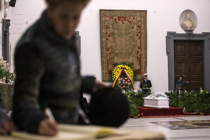 Ed oggi, venerdì 9 gennaio, si sono svolti i funerali nella basilica di Santa Croce al Flaminio, in via Guido Reni. Queta volta, alla cerimonia sono accorsi in molti tra cui un suo carissimo amico, il Mago Silvan (a seguire le foto Ansa della camera ardente, in alto il video LaPresse dei funerali).
