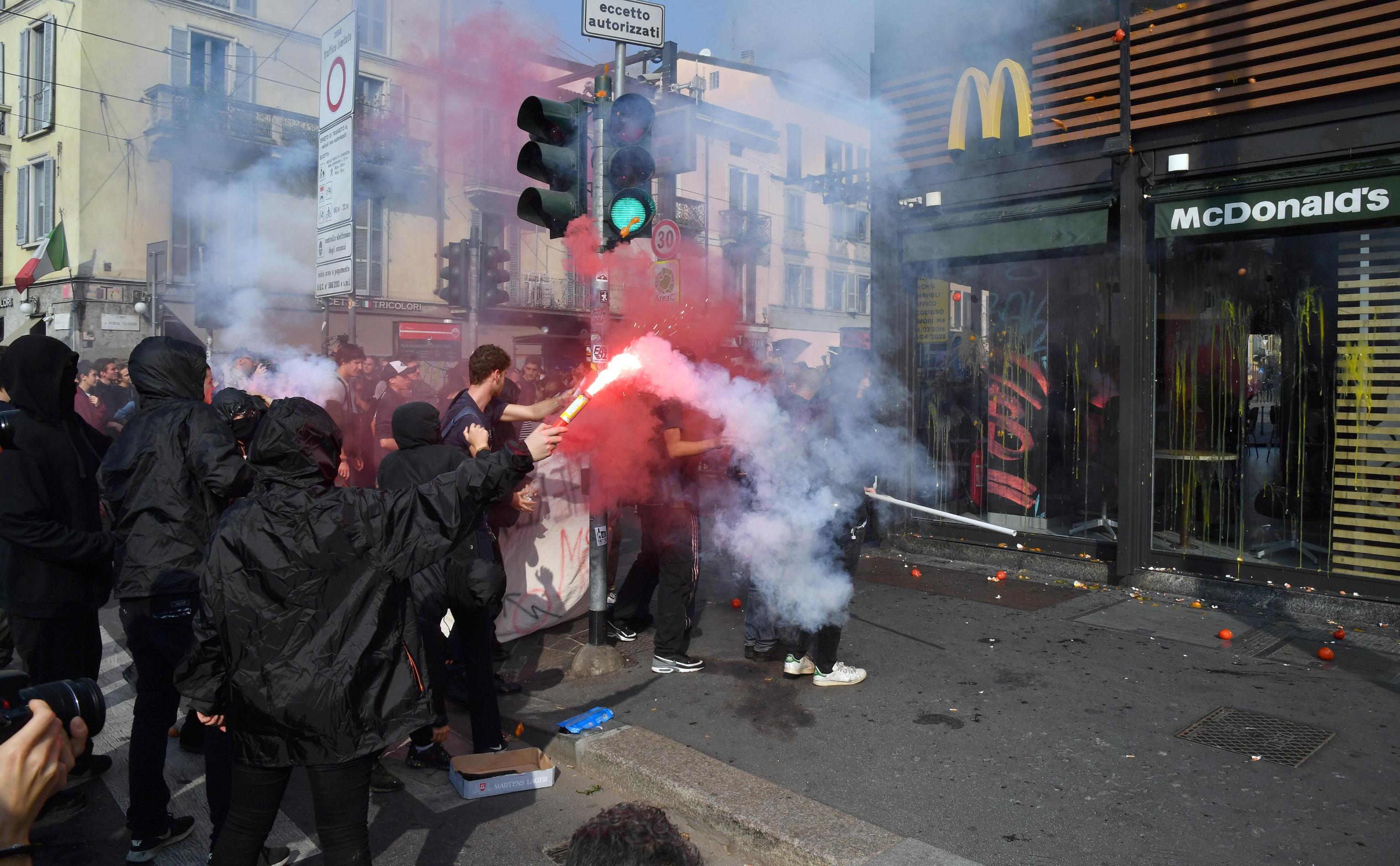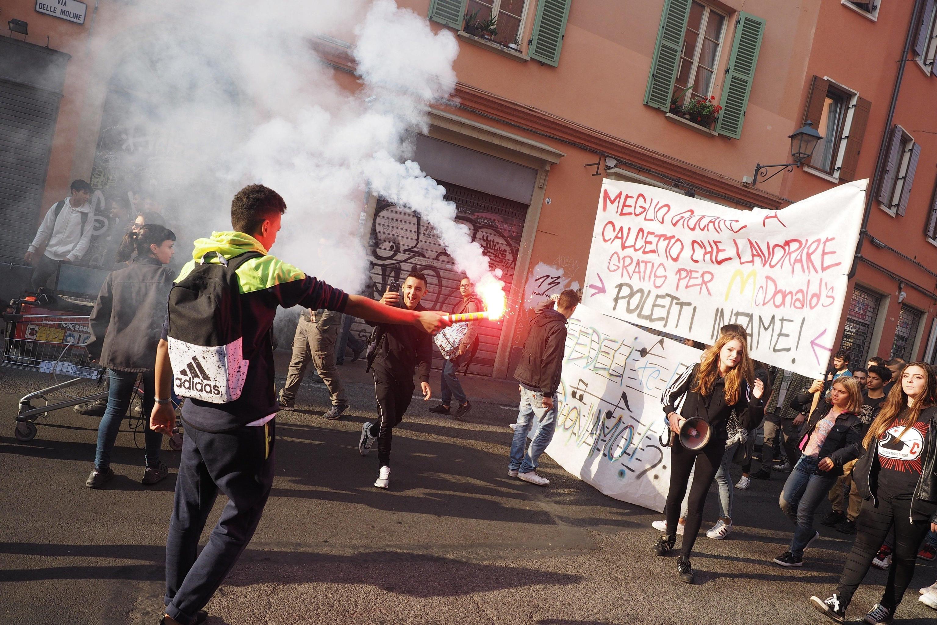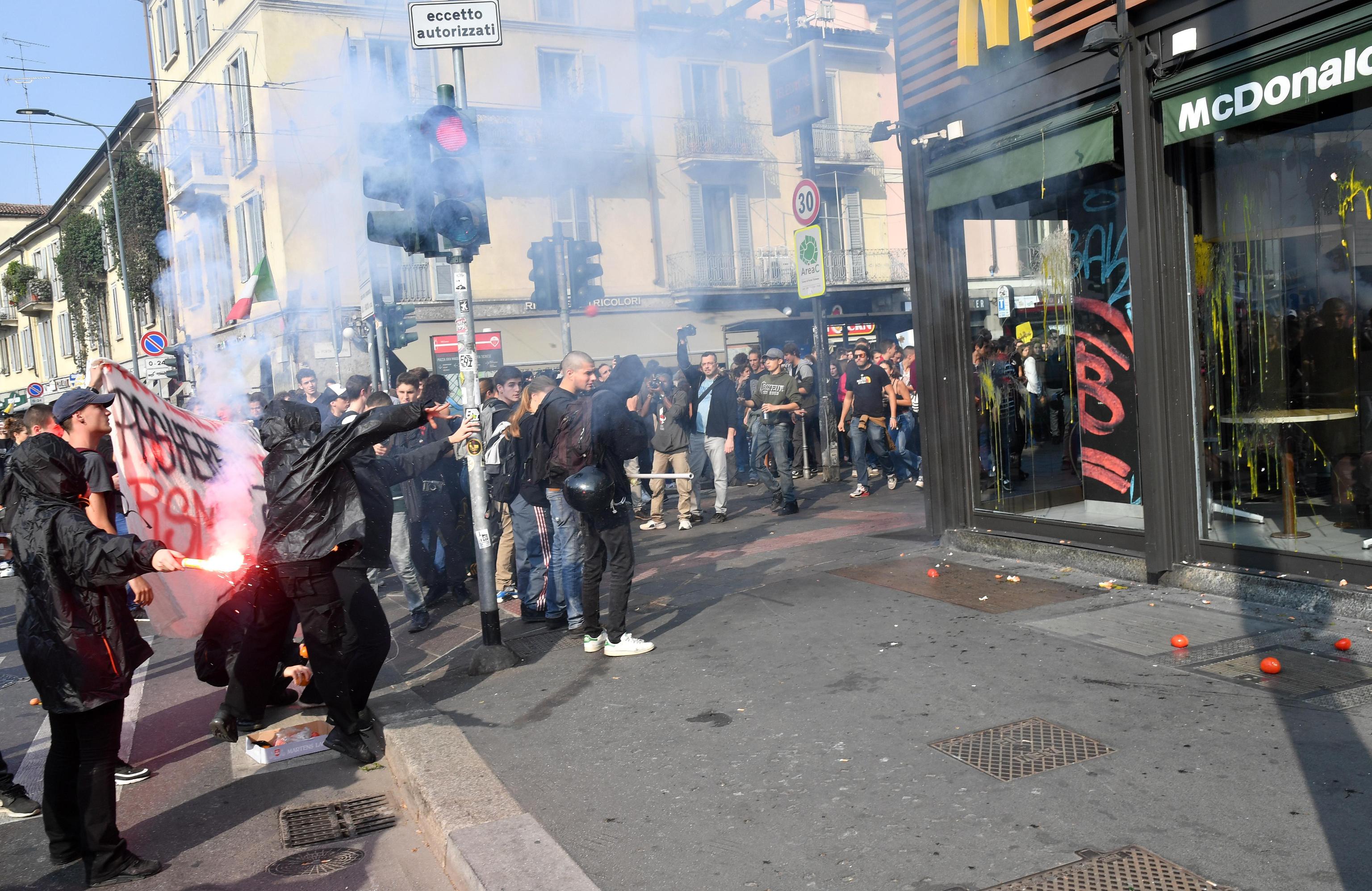 In seguito, alcuni studenti hanno lanciato uova e pomodori contro le vetrine del ristorante Mc Donald’s in piazza Sant’Eustorgio, nella zona dei Navigli: il ministero dell’Istruzione ha siglato nell’ottobre 2016 un accordo con Mc Donald’s per ospitare gli studenti. La nota compagnia di fast food è ritenuta dalle associazioni studentesche più critiche un simbolo degli stage dal basso contenuto formativo che sarebbero proposti agli alunni.