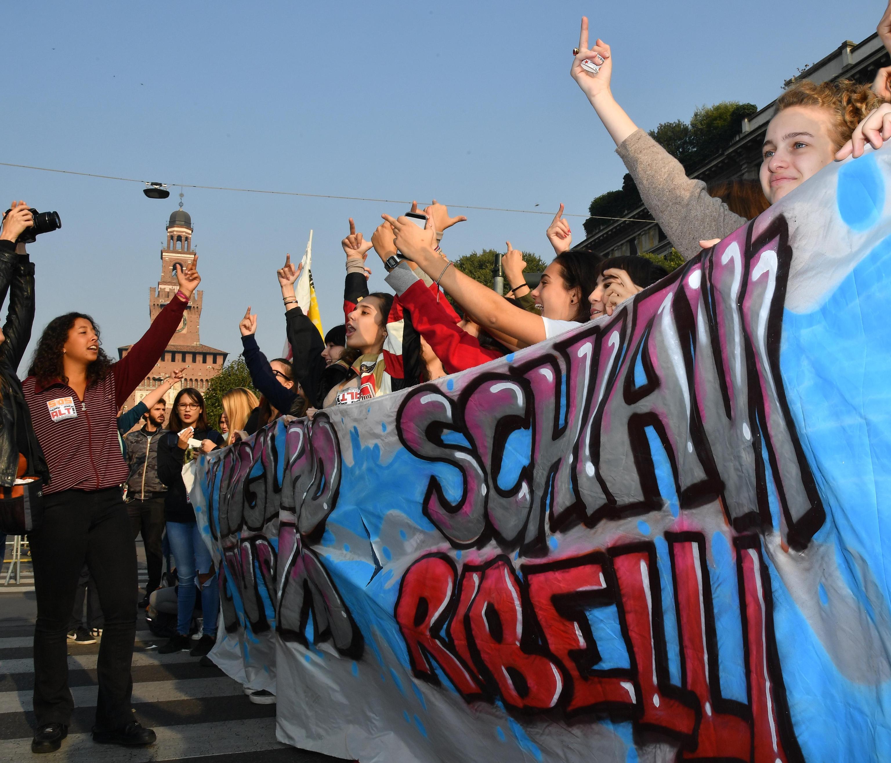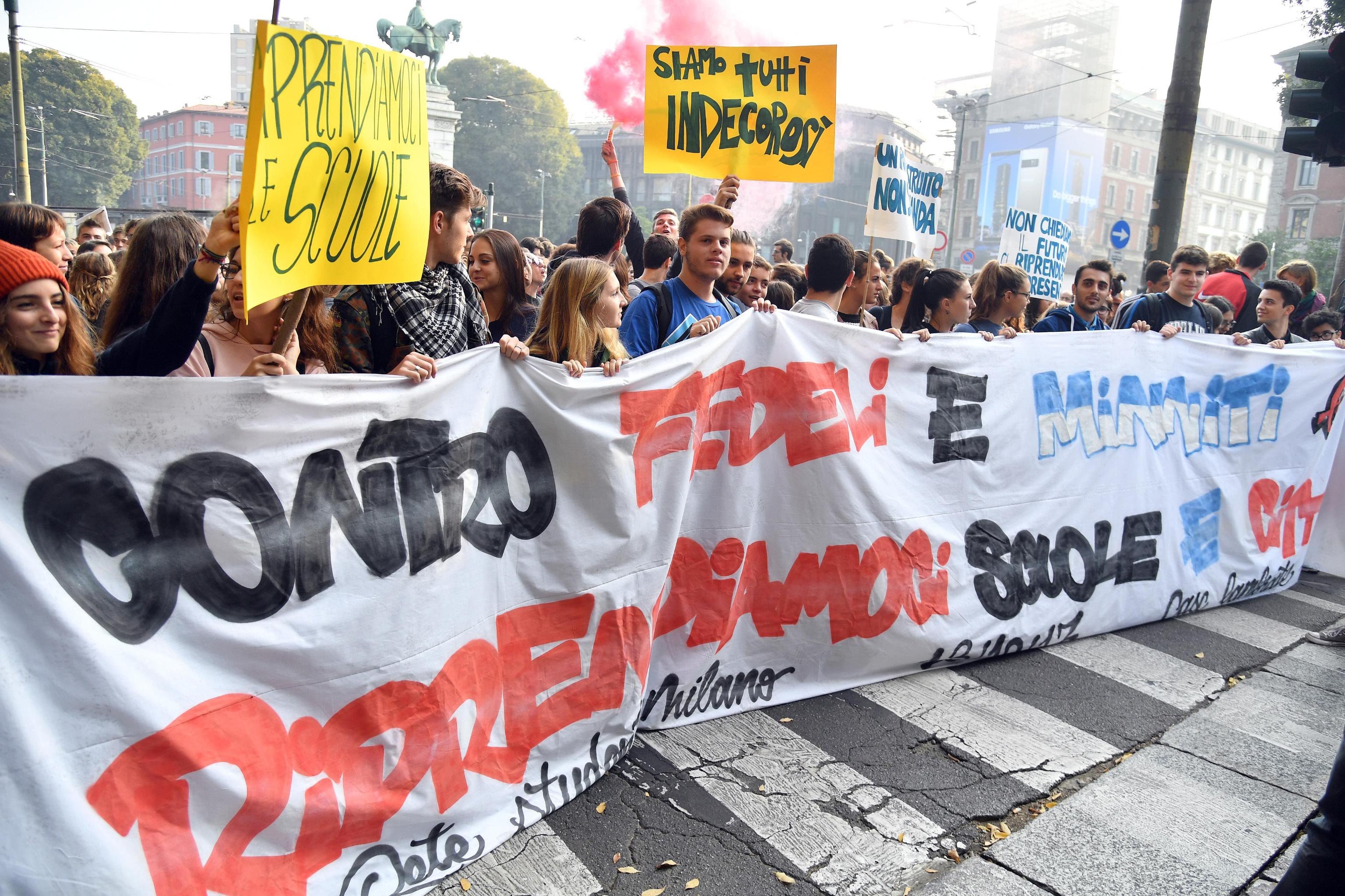 MILANO – Circa 1500 studenti in piazza a Milano. Il percorso si è snodato verso piazzale Cadorna, via Carducci, viale Papiniano, piazza XXIV Maggio, corso Italia, via Meravigli, piazza Cordusio e di nuovo largo Cairoli. “Solo da voi può partire la lotta per fargliela rimangiare questa alternanza scuola-lavoro, che è l’ultimo atto delle politiche europee che trasforma la scuola pubblica in una scuola del mercato che vi toglie possibilità di apprendere e essere critici. Questa scuola dobbiamo combatterla, sia noi lavoratori che voi studenti”, ha detto al Corriere della Sera un’insegnante che marcia con i ragazzi.