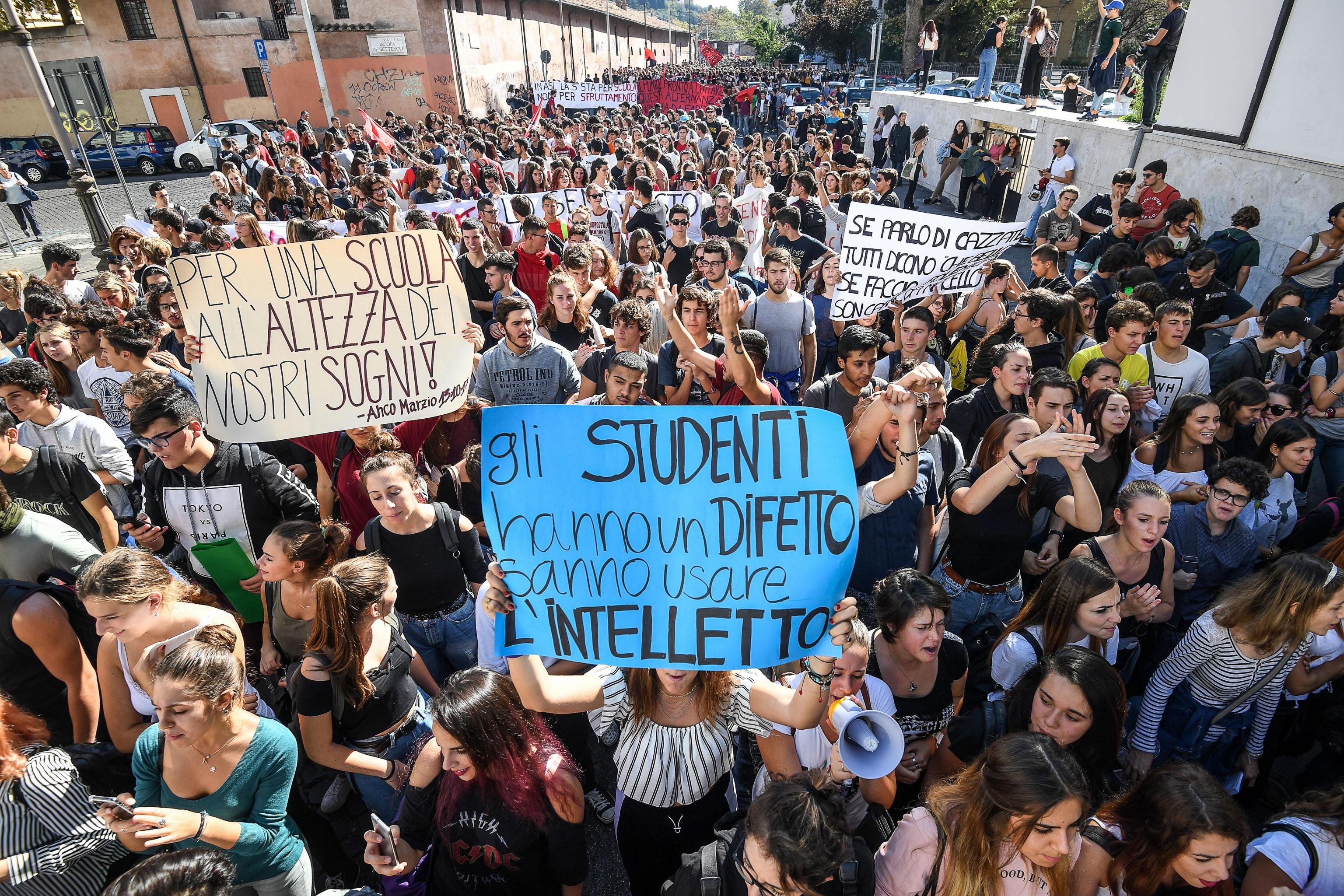 ROMA – Cortei degli studenti in tutta Italia, nel giorno della mobilitazione nazionale del mondo della scuola. collettivi studenteschi hanno deciso di scendere in piazza per ribadire la loro contrarietà alla riforma della Buona Scuola, in particolare all’alternanza Scuola-Lavoro, ma anche alle politiche del governo Gentiloni.