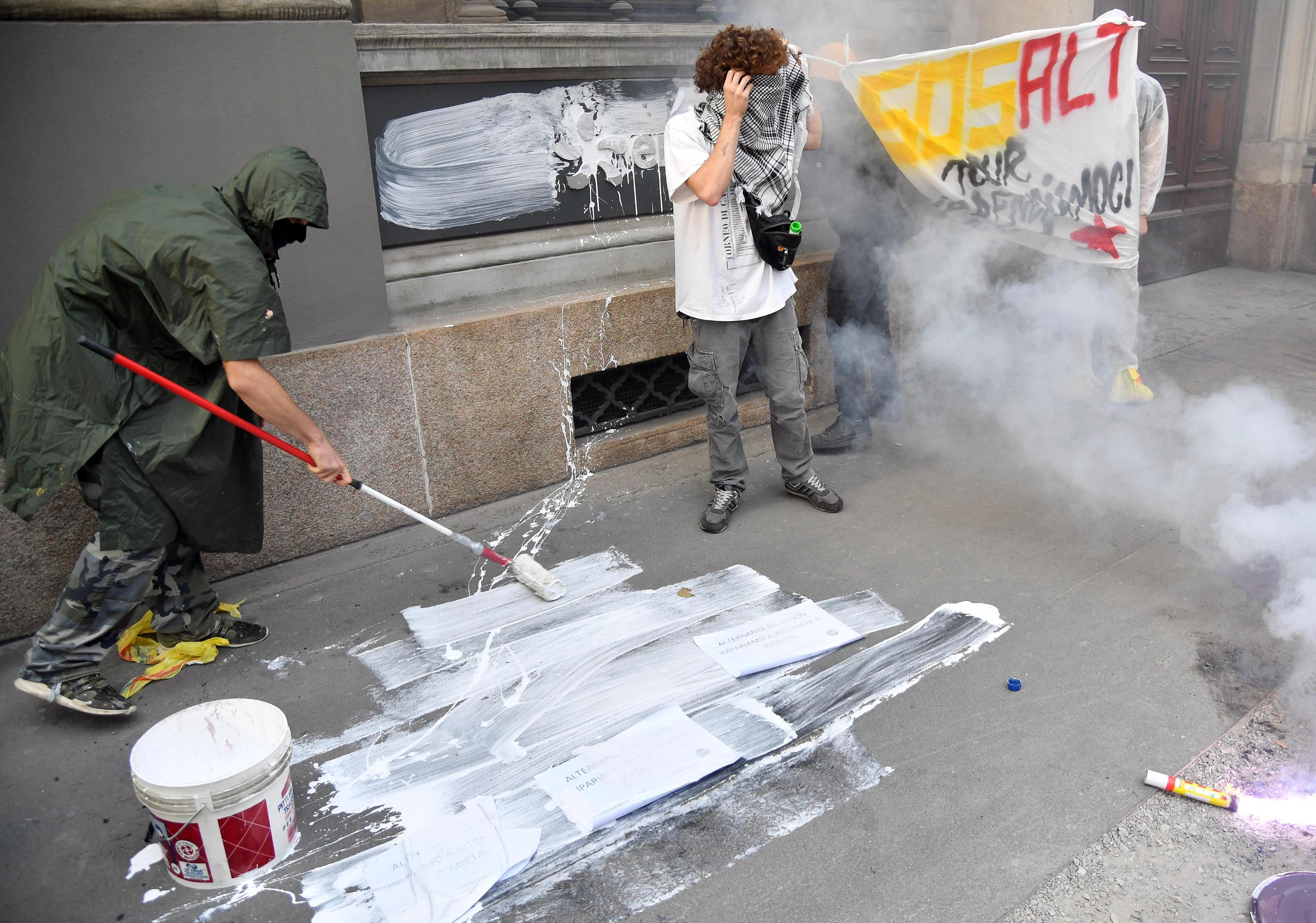 Inevitabili le azioni dimostrative che accompagnano questo tipo di manifestazioni: in foro Bonaparte vernice bianca contro la sede Edison, in corso Garibaldi scritte in vernice rossa “nemici di studenti e lavoratori” sul muro del circolo pd “Aniasi”.