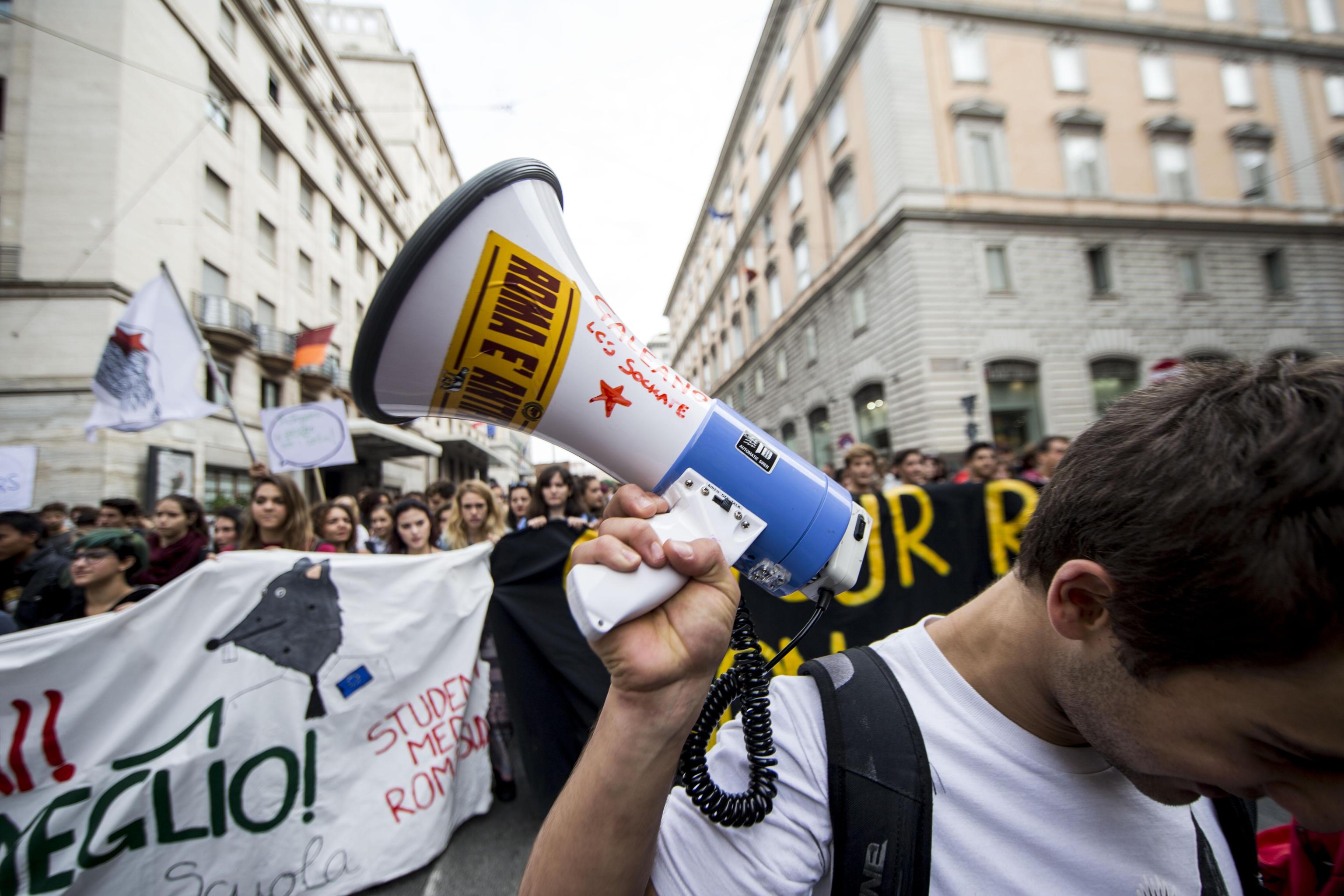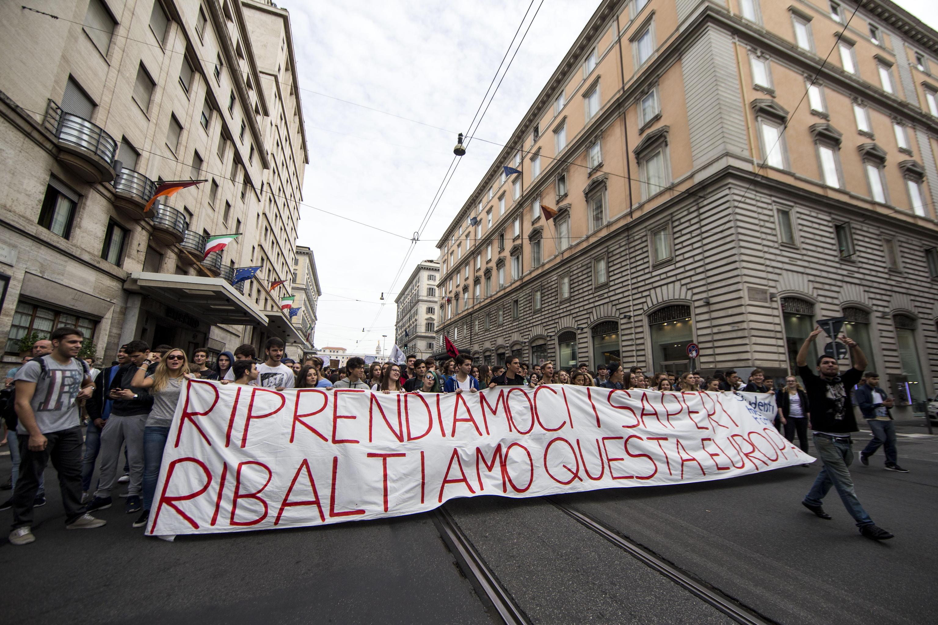 “Riprendiamoci la scuola. Noi non ci fermiamo”. Un lungo striscione ha aperto il corteo dei licei romani che sono tornati in piazza. Una manifestazione di circa tremila studenti partita da piazza della Repubblica e finita in piazza del Colosseo. Un secondo presidio di studenti si è invece svolto al Miur di viale Trastevere mentre la scorsa notte è stato messo in atto un blitz della Rete della Conoscenza davanti a Montecitorio con uno striscione per lanciare la manifestazione. “La Buona Scuola è stato votata in parlamento e si appresta ormai ad entrare dentro i nostri luoghi di formazione, l’attacco all’istruzione pubblica e alla democrazia nelle scuole è sempre più evidente” si leggeva nel volantino della manifestazione. Il Questore di Roma, Nicolò D’Angelo, si è complimentato con gli studenti che hanno manifestato, poiché “sono stati mantenuti gli impegni assunti durante il tavolo tecnico svoltosi ieri in Questura, consentendo così di ridurre al minimo i disagi per la cittadinanza” (foto Ansa sul corteo di Roma, video LaPresse sulle manifestazione di Milano e R):