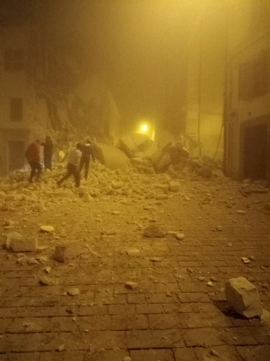 Proprio in questo centro storico, nella notte tra 26 e 27 ottobre, sono state completate le operazioni di sgombero: la maggior parte delle abitazioni è inagibile e gli sfollati sono stati accolti nel palazzetto dello sport universitario di contrada Le Calvie e nel deposito dei mezzi pubblici della Contram di via Le Mosse.