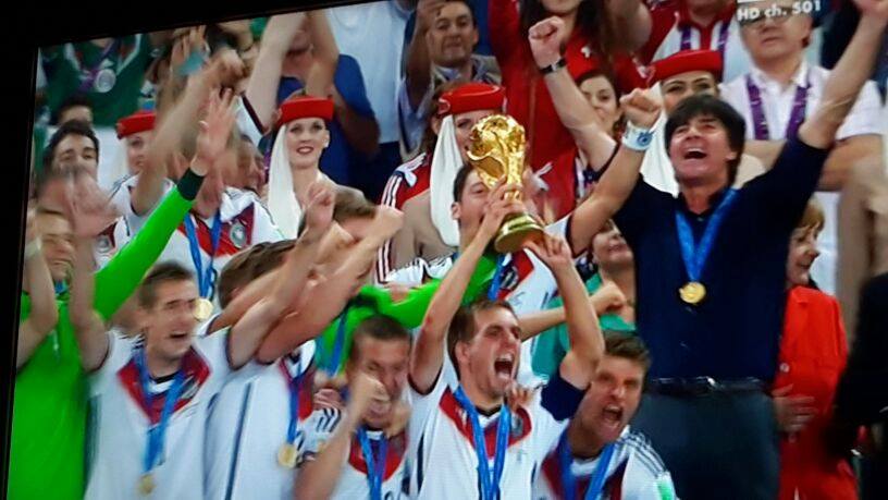 Schweinsteiger ha detto all’inviata che avrebbe dovuto porre le domande in bavarese. La giornalista ha risposto di non avere familiarità con quella lingua e ha continuato a parlare in inglese, prima congratulandosi con entrambi per la vittoria, poi chiedendo a Muller se gli dispiacesse non essere capocannoniere del Mondiale.