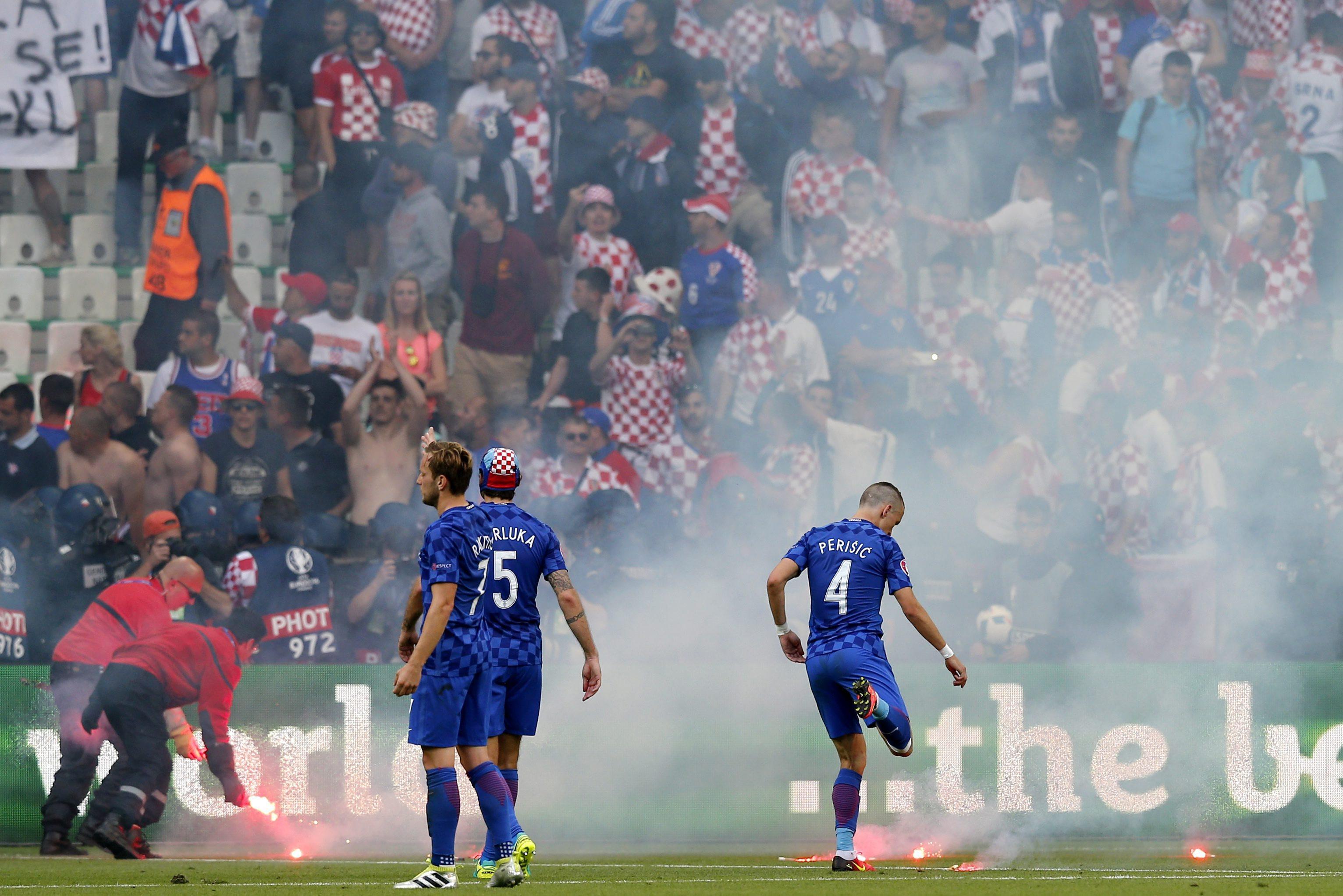 Fumogeni in campo durante Repubblica-Ceca-Croazia