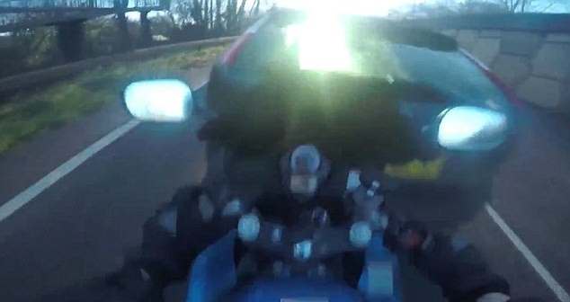 L’incidente accade in Gran Bretagna: le immagini le pubblica il Daily Mail ed è stato ripreso da una GoPro montata sul casco. Il motociclista ha scritto poi di essersela cavata con una ecchimosi e con un po’ di mal di schiena.
