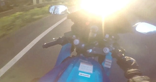 L’uomo non vede l’auto ferma e finisce a terra. L’effetto è ben rappresentato dal video: una volta che il motociclista si scontra, si vede la telecamera che rotola fino a fermarsi sull’erba. Il motociclista, a commento del filmato scrive: “Stavo guidando lungo una strada a due corsie leggermente in pendenza. Il sole mi ha quasi totalmente accecato. Ho provato a rallentare e non ho evitato l’auto”.