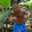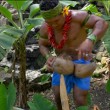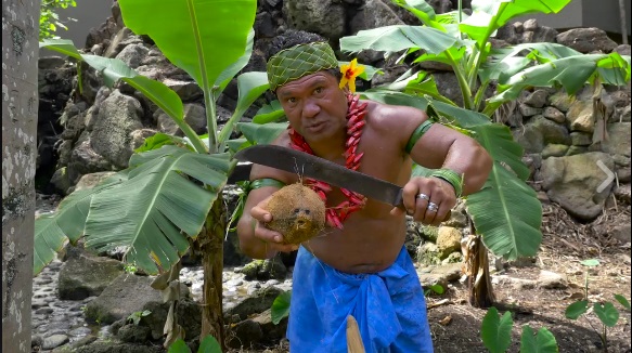 Il capo villaggio si mostra sicuro di sé e spiega in un tutorial video caricato sulla pagina Facebook del parco tematico come fare per aprire una noce di cocco usando solo i propri denti o un grosso bastone. Nel primo caso saranno sufficienti alcuni ben assestati morsi per privare la noce di cocco della parte più esterna, mentre nel secondo caso risulta una strategia vincente infilzare con forza la noce di cocco sul bastone, provocandone la rottura.