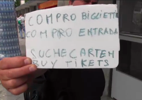 BERLINO, GERMANIA – Mancano un paio d’ore alla finalissima di Champions League tra la Juventus ed il Barcellona. Il Corriere della Sera, con il suo inviato a Berlino, ha scambiato due battute con un bagarino napoletano che era nei pressi dello stadio: “Sono un bagarino onesto. Il mio obiettivo è quello di prendere i biglietti pagando poco più del loro prezzo originario e rivenderli cercando di guadagnarci qualcosa. Ti faccio un esempio. Se il biglietto costa 300 euro, io lo compro a 500 euro e lo rivendo a 700 euro. Prezzi onesti. Sono un bagarino onesto. Vendo e compro biglietti ma fino a questo momento non ho fatto grandi affari”. Per il resto Il Corriere della Sera ha intervistato diversi tifosi juventini presenti sul posto che sono tutti convinti di poter alzare al cielo di Berlino la Champions League. Foto da video.
