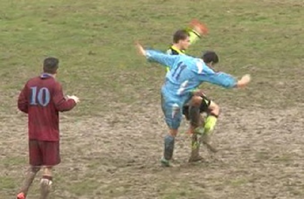 Dopo aver sentito il suono del fischietto, il ragazzo ha perso la testa: ha aggredito con violenza il direttore di gara, prendendolo a testate e spedendolo al pronto soccorso. Ora, lo sportivo rissoso è stato rinviato a giudizio per lesioni ed è anche stato squalificato per cinque anni dal giudice sportivo. La partita, invece, è stata sospesa.
