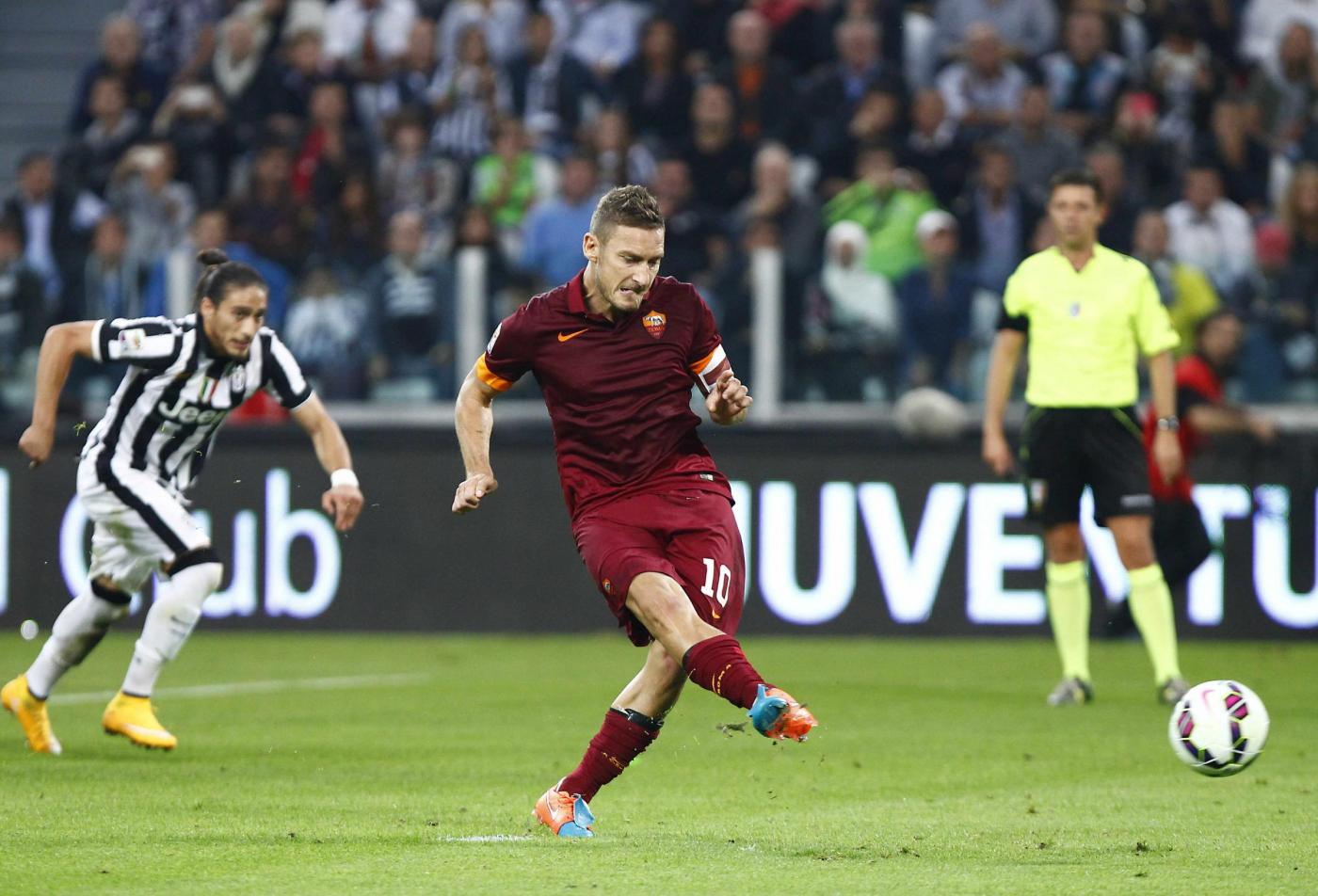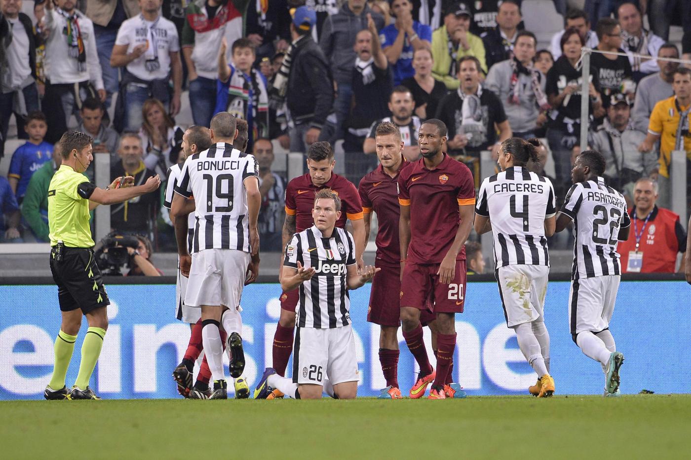 Reti: nel pt Tevez 27′ rig. e 46′ rig., 32′ Totti rig., 44′ Iturbe; nel st 42′ Bonucci. Angoli: 6-4 per la Roma. Recupero: 1′ e 4′. Espulso l’allenatore della Roma Garcia, per proteste , al 29′ pt; Morata e Manolas 44′ st. Ammoniti: Chiellini, Lichsteiner, Maicon, Gervinho per gioco scorretto, Bonucci per proteste, Totti e Tevez per comportamento non regolamentare. Note: spettatori 41.200, incasso 1.928.494.