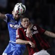 – 23′ pt: El Shaarawy dalla sinistra crossa al centro, Menez libero da marcatura batte facile Handanovic. – 16′ st rasotterra angolato di Obi, Diego Lopez non ci arriva e l’Inter trova il pari.