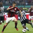 Milan e Inter 1-1 (1-0). Milan (4-2-3-1): Diego Lopez 5.5, Rami 6, Zapata 5, Mexes 6, De Sciglio 6, Bonaventura 6.5, Essien 5.5, Muntari 5 (31′ st Poli 6), El Shaarawy 6, Menez 6.5, Torres 5 (28′ st Honda 5.5). (32 Abbiati, 1 Agazzi, 14 Albertazzi, 27 Armero, 81 Zaccardo, 18 Montolivo, 8 Saponara, 21 Van Ginkel, 19 Niang, 11 Pazzini). All.: F. Inzaghi 6.