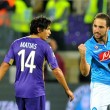 Inter (4-3-3): Handanovic 6, Nagatomo 6, Ranocchia 6, Juan Jesus 5.5, Dodo’ 6; Guarin 5.5, Kuzmanovic 5.5, Obi 6.5 (27′ st Hernanes 5.5), Kovacic 5 (49′ st M’Vila sv), Palacio 5, Icardi 4.5 (44′ st Osvaldo sv). (30 Carrizo, 46 Berni, 6 Andreolli, 14 Campagnaro, 15 Vidic, 33 D’Ambrosio, 54 Donkor, 44 Khrin, 97 Bonazzoli). All.: Mancini 6. Arbitro: Guida 5.5. Reti: nel pt 23′ Menez; nel st 16′ Obi. Recupero: 1′ e 4′. Angoli: 9 a 4 per il Milan. Ammoniti: nel pt 28′ Mexes, 32′ Obi, 21′ Bonaventura, 24′ Juan Jesus per gioco non regolamentare. Spettatori: 79.173