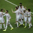 Spagna (4-2-3-1): Casillas 5; Azpiliqueta 4.5, Piquè 4.5, Sergio Ramos 4.5, Jordi Alba 4.5; Xabi Alonso 6 (64′ Pedro 5.5), Busquets 5; Iniesta 5.5, Xavi 5.5, Silva 5.5 (78′ Fà bregas senza voto); Diego Costa 5 (63′ Torres Sanz senza voto). A disp. Reina, De Gea, Albiol, Javi Martinez, Juanfran, Koke, Cazorla, Mata, Villa. All. Del Bosque 4.