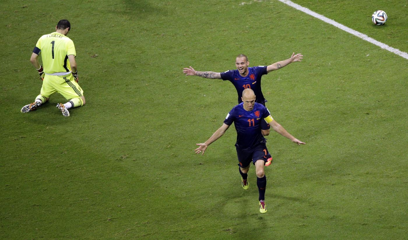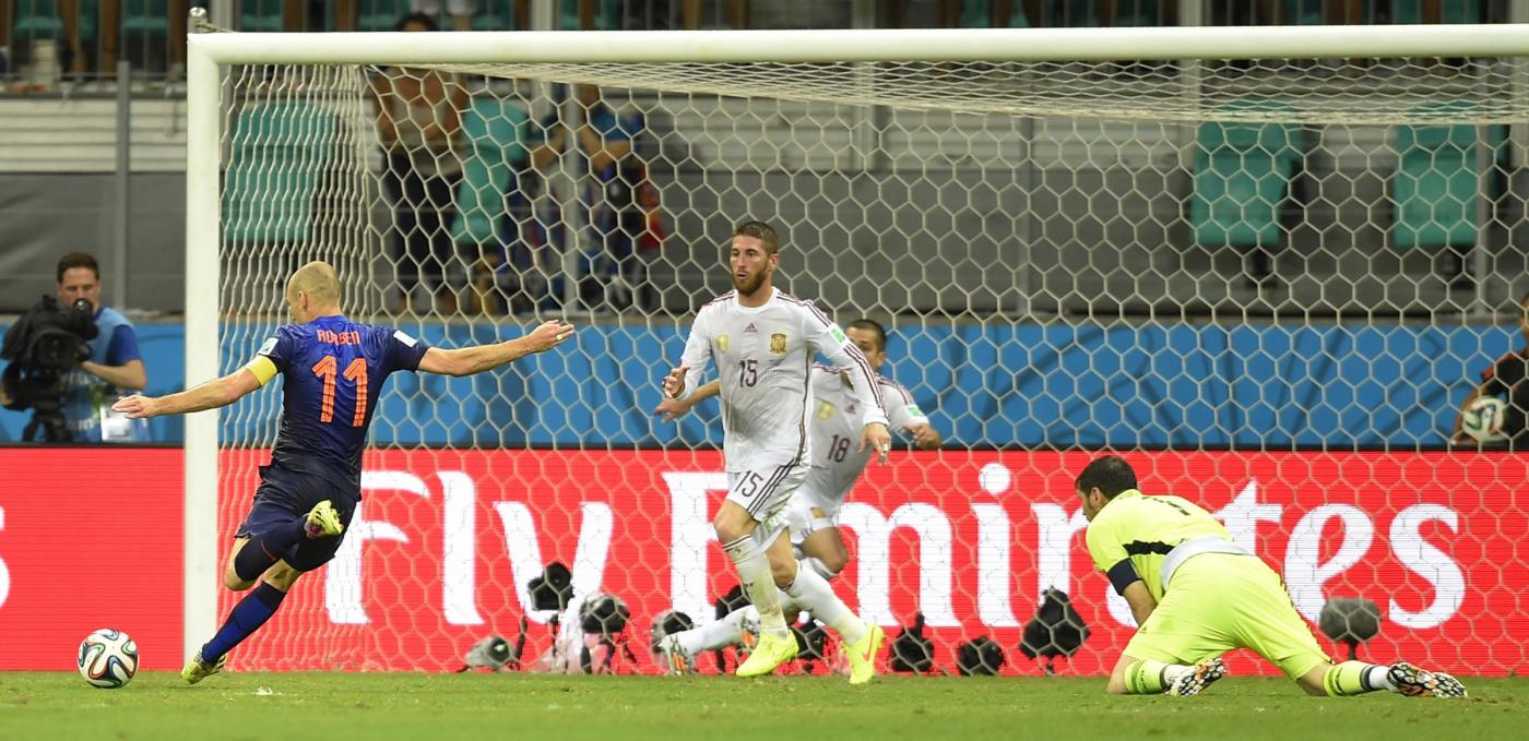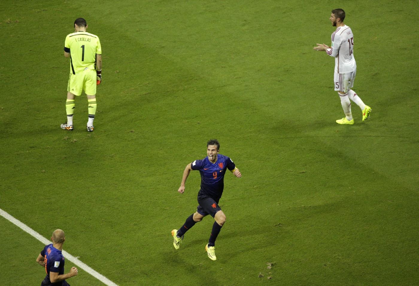 RIO DE JANEIRO, BRASILE – Esordio da sballo per l’Olanda di Louis Van Gaal. Gli oranje hanno steso i campioni del mondo in carica della Spagna con una manita (5-1) che fa capire benissimo qual’è stato il copione della partita.