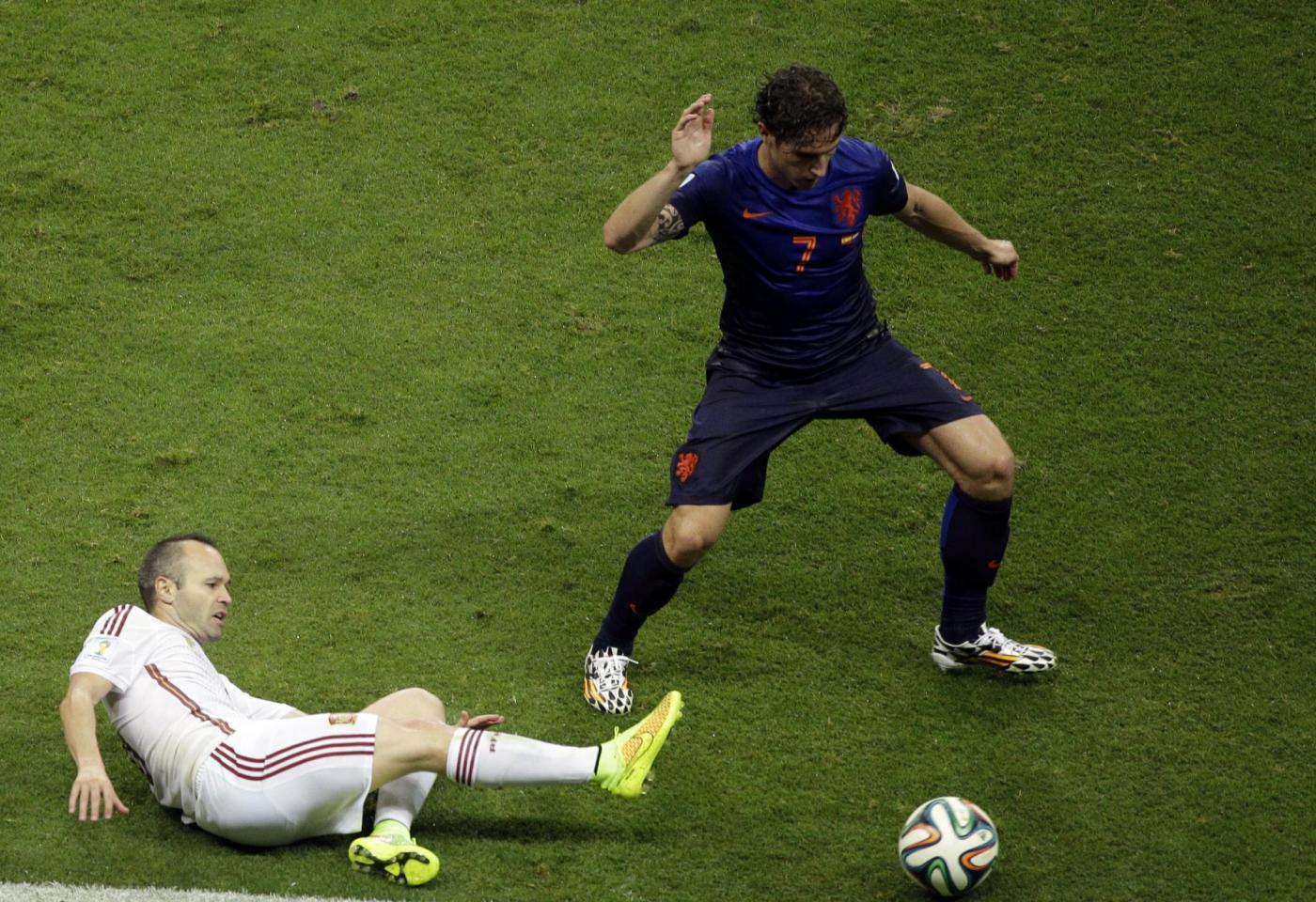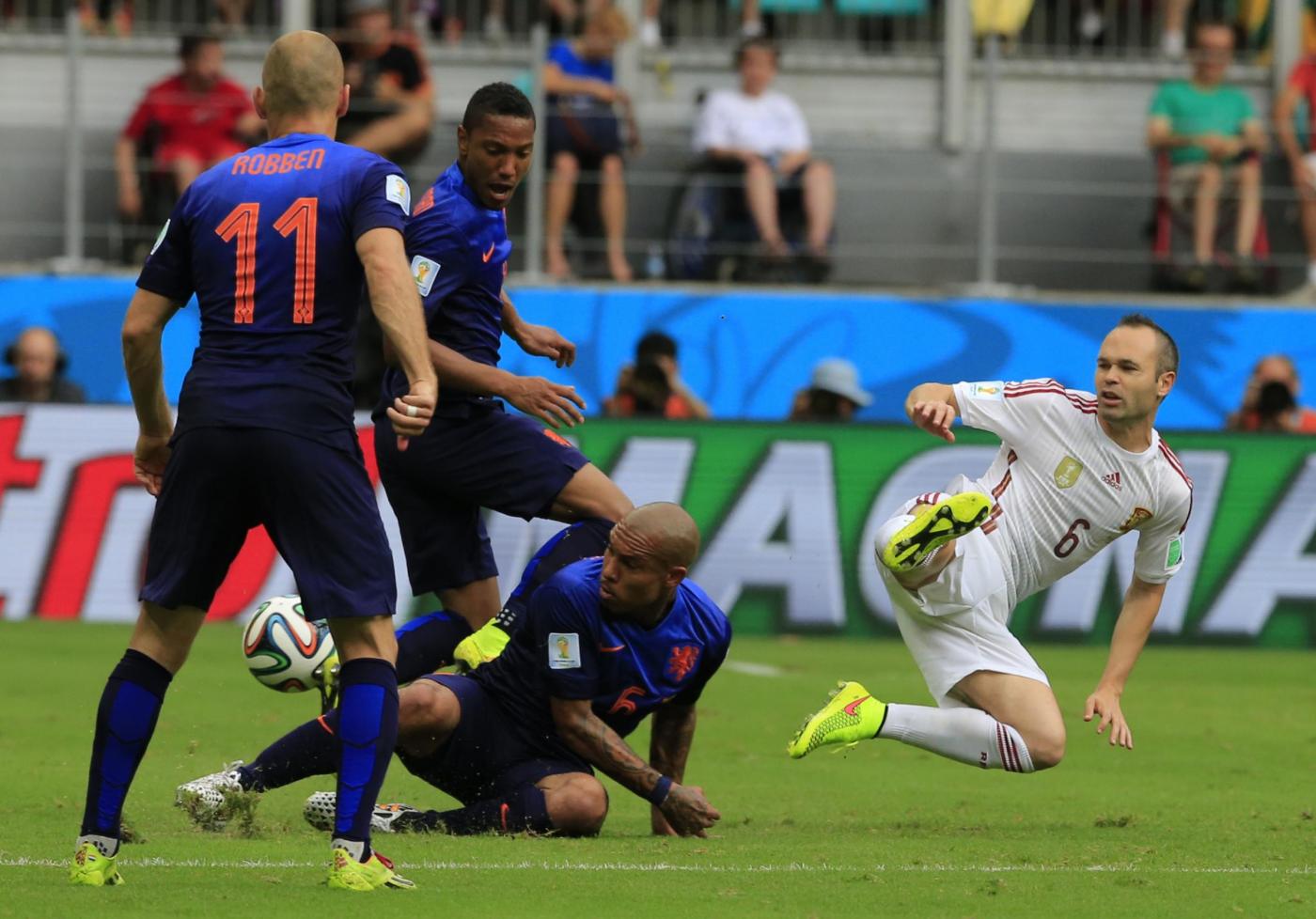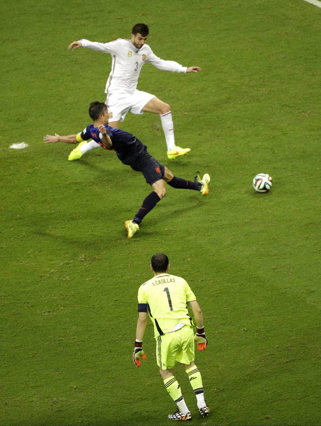 RIO DE JANEIRO, BRASILE – Esordio da sballo per l’Olanda di Louis Van Gaal. Gli oranje hanno steso i campioni del mondo in carica della Spagna con una manita (5-1) che fa capire benissimo qual’è stato il copione della partita.