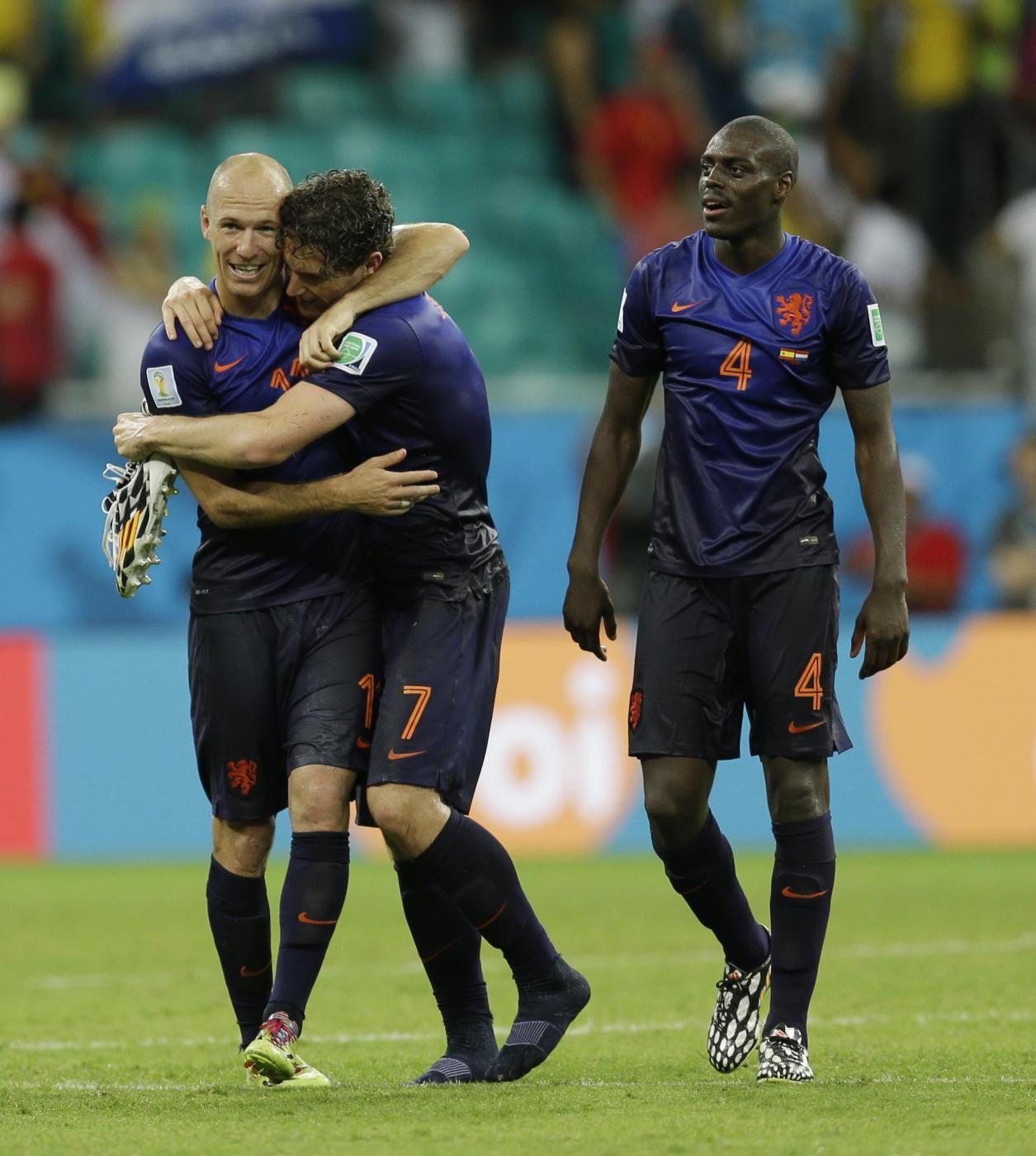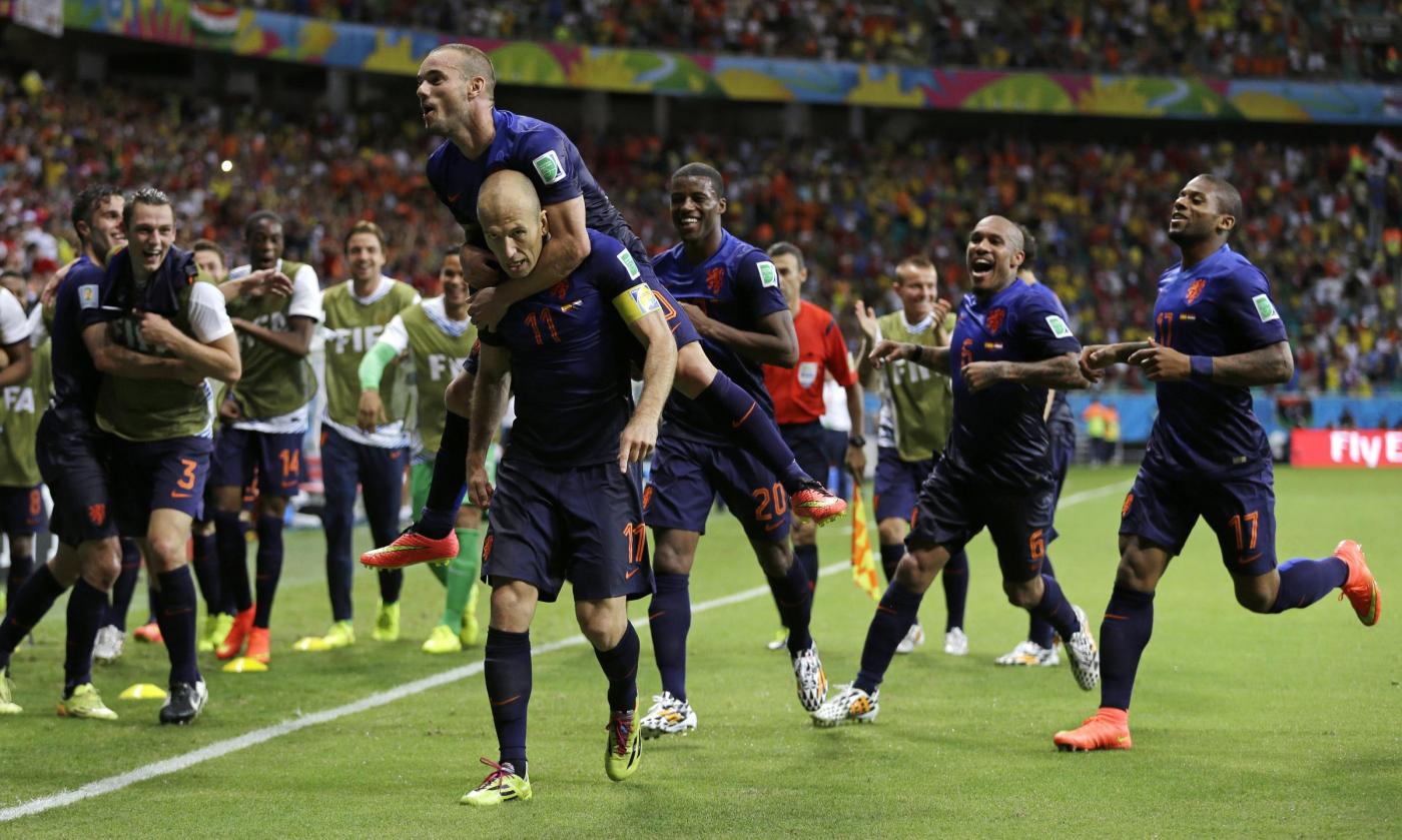 Marcatori: 27′ Alonso (S), 44′ van Persie, 53′ Robben, 64′ De Vrij, 72′ van Persie, 80′ Robben (O)