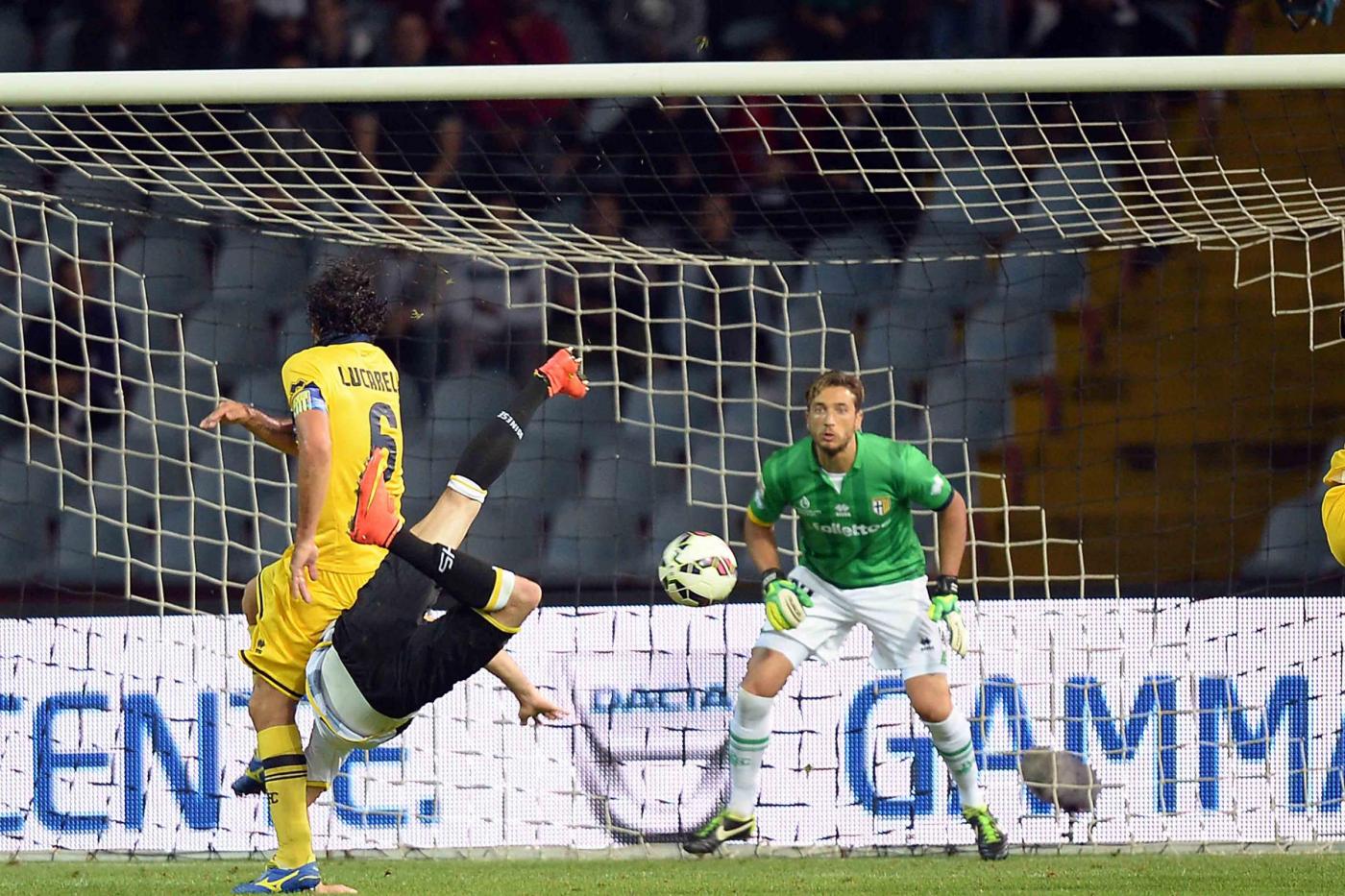 Parma (4-3-3): Mirante 6; Pedro Mendes 5.5 (1′ st Santacroce 5.5), Lucarelli 6, Felipe 6, Gobbi 5.5; Acquah 5, Jorquera 6.5 (20′ st Galloppa 5.5), Mauri 6.5; Coda 6, Cassano 7, De Ceglie 5.5 (16′ st Belfodil 5.5) (1 Cordaz, 22 Iacobucci, 33 Rispoli, 13 Ristovski, 21 Lodi, 70 Vieira, Ghezzal, 17 Palladino, 9 Pozzi). All. Donadoni: 5.5 Arbitro: Calvarese di Teramo 6.5 Reti: nel pt, 23′ Mauri, 29? e 45′ Di Natale, 48′ Cassano (rig.); nel st 12′ Heurtaux, 39′ Thereau. Recupero: 3′ e 3′ Angoli: 6-4 Espulsi: Acquah al 31′ st per doppia ammonizione Ammoniti: Acquah, Kone, Widmer per gioco falloso