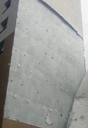 VIDEO Intonaco esterno del palazzo spazzato via dal vento: