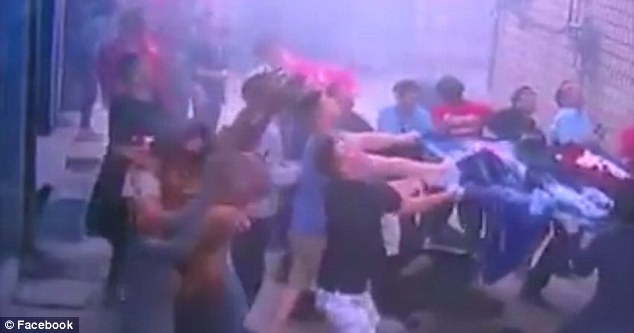 Il militare porta delle coperte e le fa tendere sul marciapiede dalla folla accorsa, poi convince la donna a gettare i figli nel vuoto, uno per volta. In questo modo riesce a mettere in salvo tutti. La donna si getta poi per ultima nel vuoto.