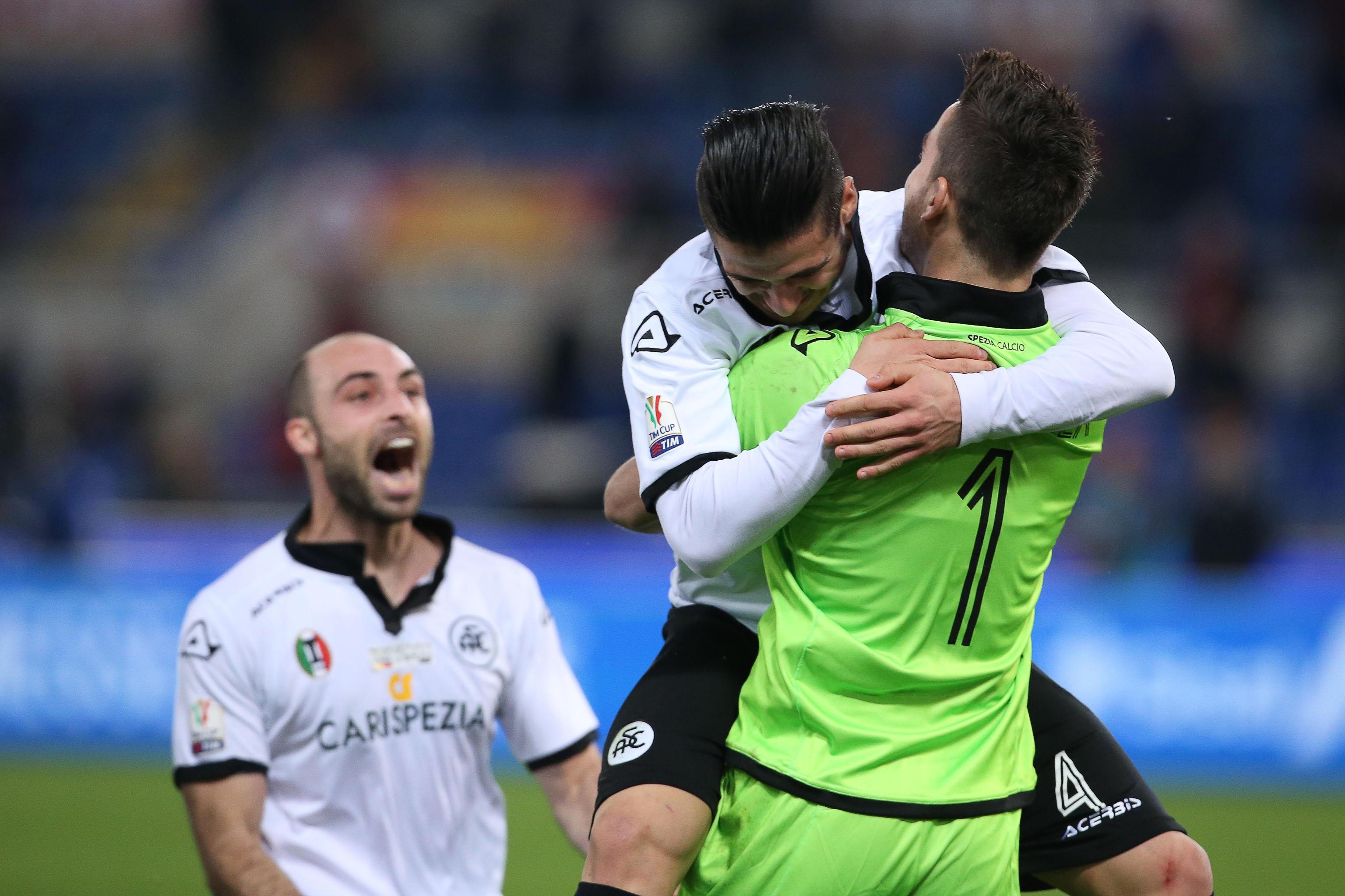 ROMA, STADIO OLIMPICO – Clamoroso in Coppa Italia: la Roma di Rudi Garcia è uscita dalla competizione dopo una sconfitta ai rigori contro lo Spezia, formazione che milita nel campionato italiano di calcio di Serie B. Decisivi gli errori di Miralem Pjanic ed Edin Dzeko.  I 90′ regolamentari e i supplementari si erano conclusi sullo 0-0.