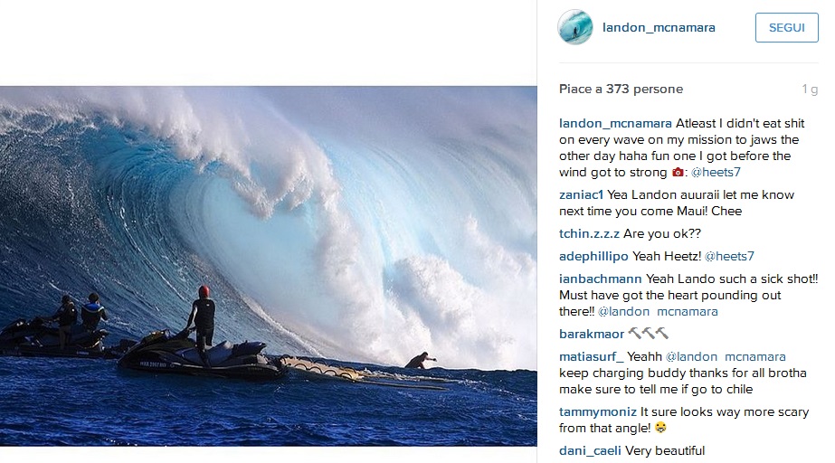 “Le tavole da surf sono superate, ho deciso di usare direttamente il corpo – ha scherzato poi Mcnamara – “ma purtroppo non è stato un successo”. Ha poi proseguito: “Ma mi sento bene, grazie a chi mi ha recuperato”.