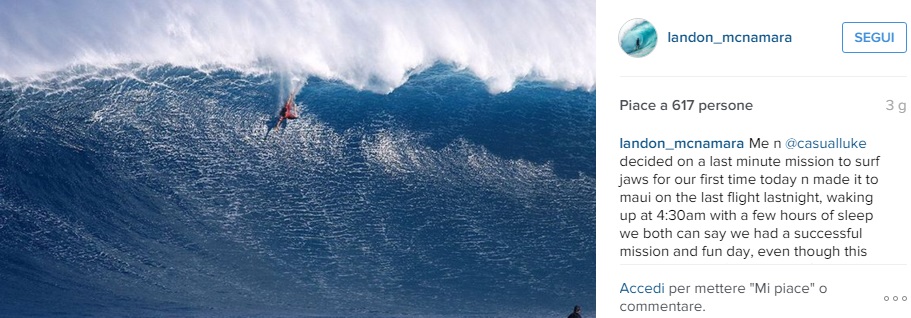 HONOLULU – Il surfista Landon Mcnamara è uscito praticamente illeso da una terribile caduta alle Hawaii: El Nino che sta portando onde gigantesche e lui ha provato senza successo a cavalcarne una. La tavola sotto di lui si è però rotta e l’atleta campione di surf ha riportato solo qualche acciacco.