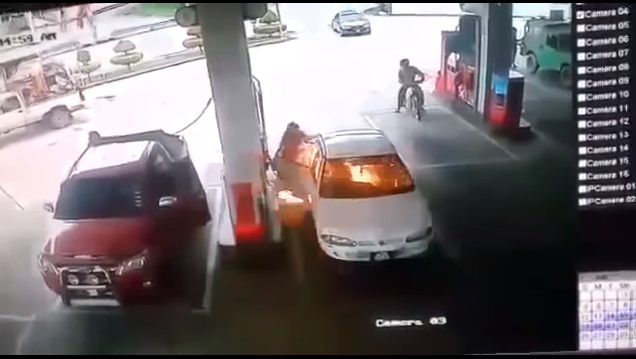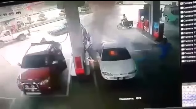 Nel video di telesorveglianza del distributore di benzina malese si vede la donna scendere dall’auto mentre il bimbo resta seduto sul sedile posteriore e gioca con un accendino, un gioco decisamente poco raccomandabile vicino ad una pompa di benzina, dato che i fumi del carburante sono facilmente infiammabili.