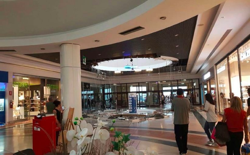 TERAMO – Un boato fortissimo, poi il lucernario che crolla sotto il peso della pioggia e forse di un fulmine. Attimi di paura si sono registrati nel pomeriggio del 5 settembre nel centro commerciale Val Vibrata a Colonnella, in provincia di Teramo, quando durante un forte temporale il lucernario è crollato proprio nel mezzo della galleria di negozi tra i clienti che passeggiavano. Fortunatamente nessun cliente è stato travolto dai detriti, ma tutti sono stati sgomberati e il centro commerciale è stato chiuso.