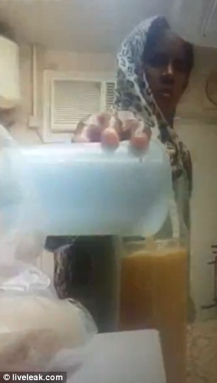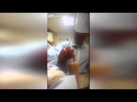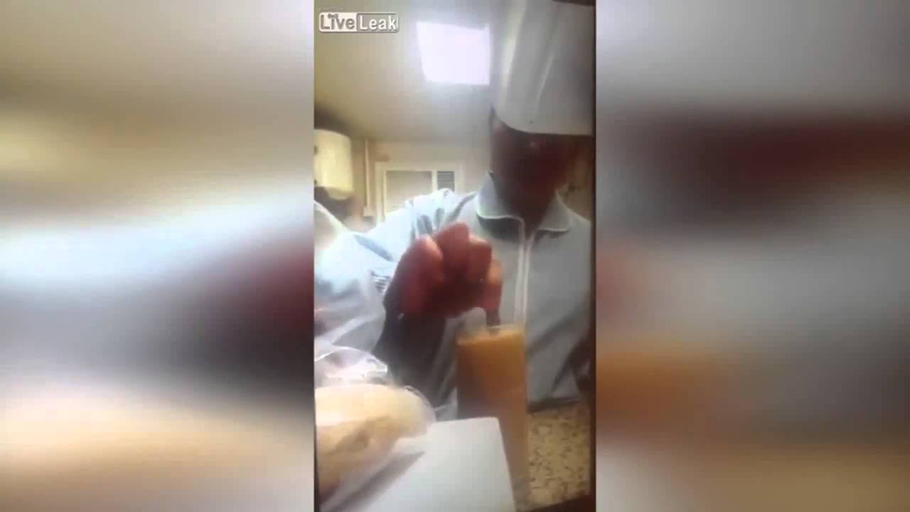 KUWAIT CITY – Una donna sta preparando un bicchiere di succo di frutta da dare ad un cliente di un hotel nel Kuwait. Una donna che sta dietro di lei, mentre la cuoca prepara il succo si ficca un contenitore nei pantaloni. Dopo un po’ lo estrae e mescola la sua pipì al succo di frutta.
