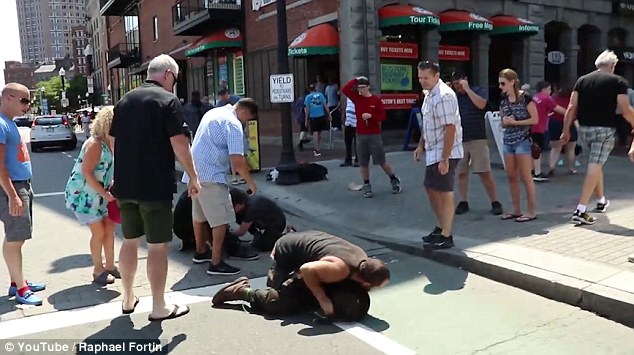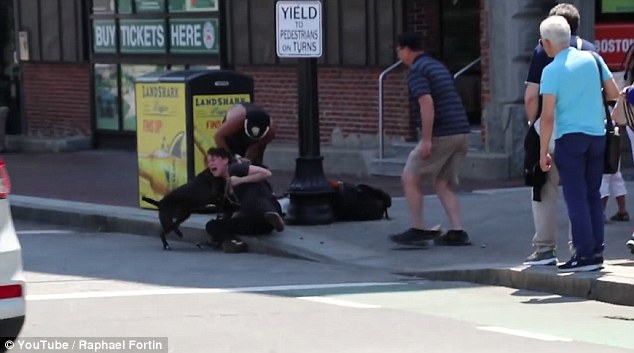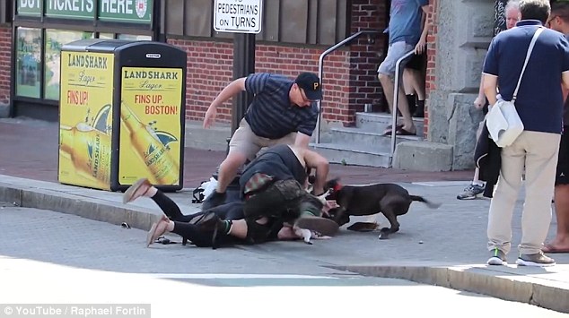 Uno dei passanti ha filmato la scena con il suo smartphone e il video dell’attacco del cane è stato pubblicato YouTube. Nel video si vede il cane che si avventa contro il cucciolo e la padrona che cerca di fare scudo con il suo corpo, mentre altri passanti intervengono in sua difesa. Raphael Fortin, un passante che ha assistito alla scena, ha raccontato quanto accaduto al Daily Mail: