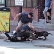 BOSTON – Una donna passeggia con il suo cucciolo di beagle per le strade di Boston, negli Stati Uniti, quando un pit bull li aggredisce. Il cane si scaglia violentemente contro il cucciolo e lo azzanna al collo: la sua padrona cerca disperatamente di salvarlo, ma la violenza del pit bull si indirizza anche verso di lei. In difesa del cucciolo di beagle e della donna sono intervenuti gli altri passanti, che hanno cercato di staccare il cane dalle sue vittime, trascinandolo e prendendolo a calci. Alla fine il pit bull ha mollato la presa e il povero beagle se l’è cavata con una profonda ferita sul collo.