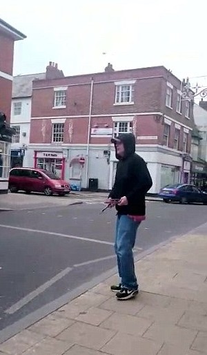 Il video mostra il killer aggirarsi per le strade del centro commerciale e minacciare i passanti, tra cui un uomo anziano che cammina con un bastone e una donna in carrozzina a cui ha gridato in stato confusionale: