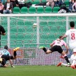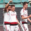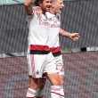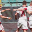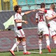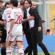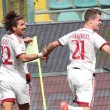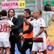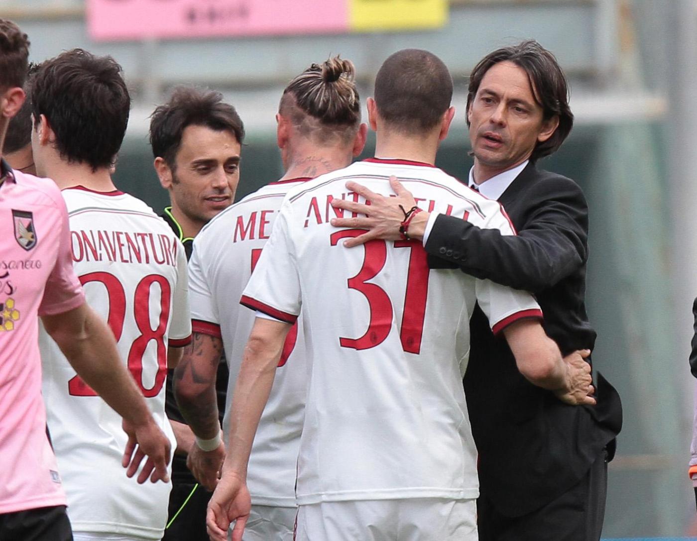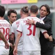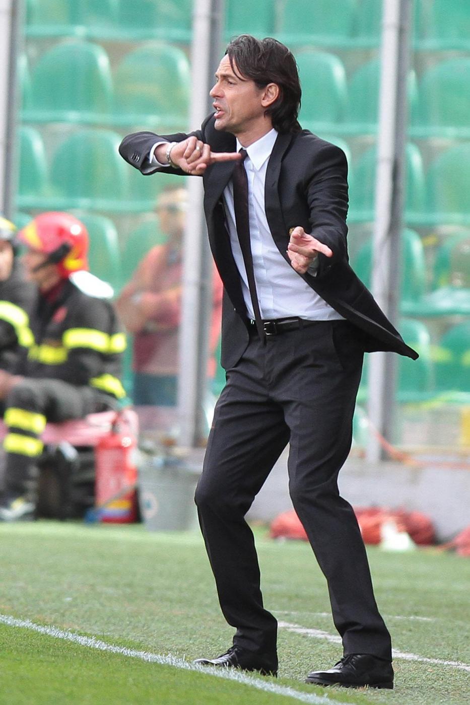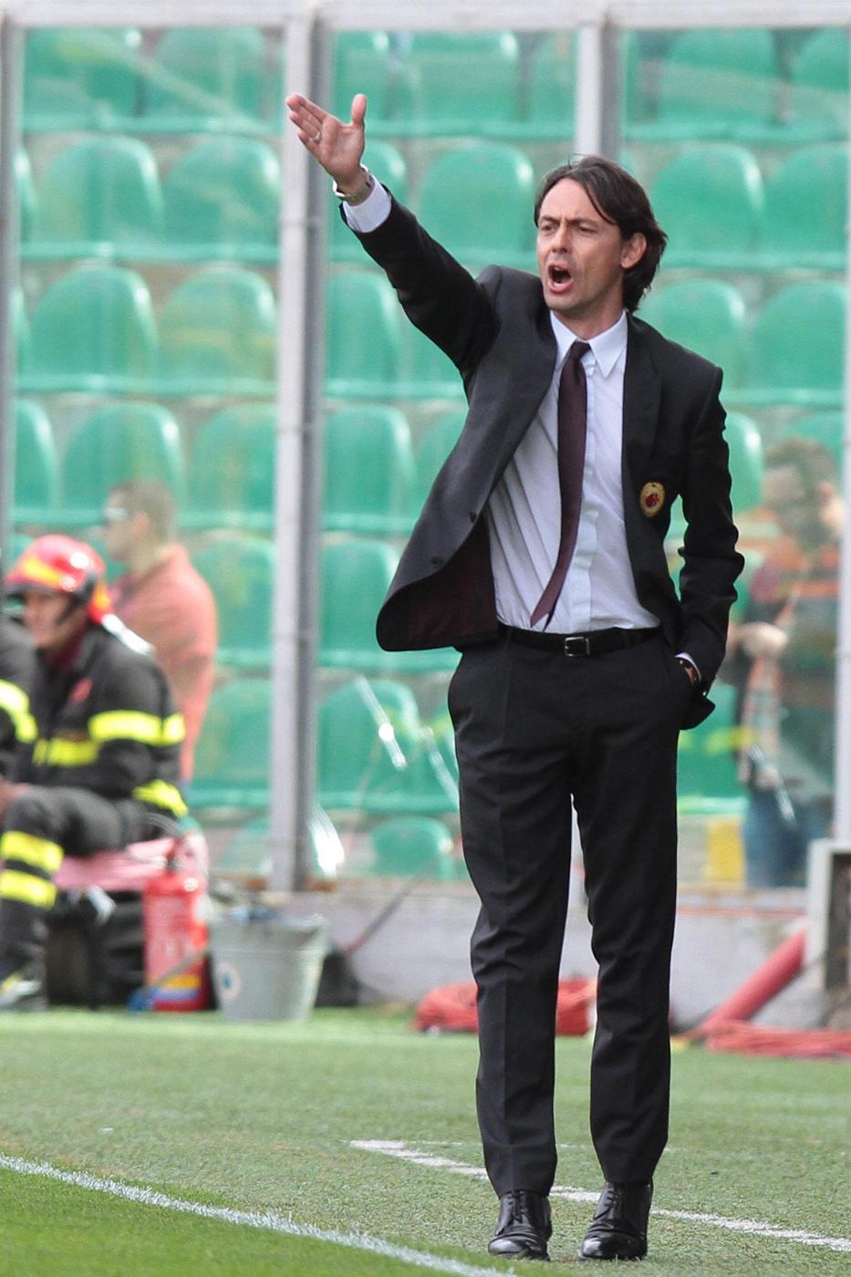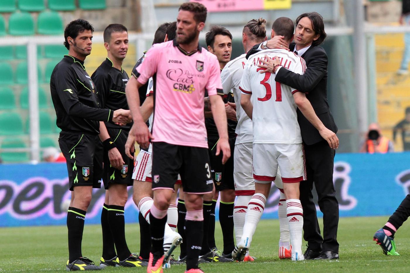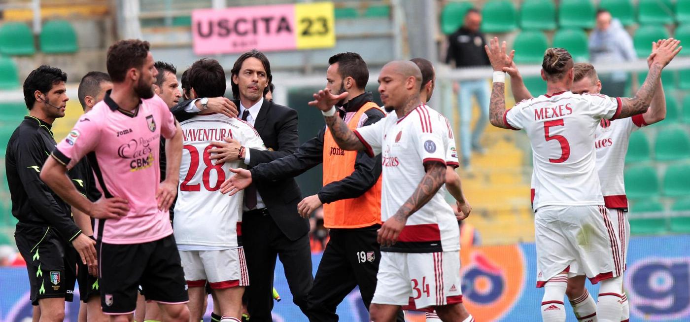 PALERMO, STADIO RENZO BARBERA – Jeremy Menez segna il gol del 2-1 per il Milan sul campo del Palermo, e anche Pippo Inzaghi festeggia. Il tecnico dei rossoneri, dopo la rete negli ultimi minuti della partita, è corso verso la bandierina del calcio d’angolo vicino alla quale i suoi giocatori stavano festeggiando. Come dire che la prodezza del francese è stata per lui un autentico sollievo.