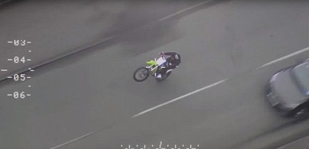 Il giovane motociclista è stato fermato dopo il lungo inseguimento da parte della polizia, documentato anche dal video girato dall’elicottero della polizia, in cui si vede Foster impennare su una sola ruota, svicolare nel traffico tagliando la strada ad altre macchine e tenere uno stile di guida davvero imprudente.