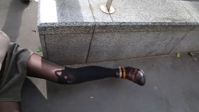 Ad intervenire è il passante che sta registrando il filmato. La donna, mentre è ancora a terra, si mette ad urlare contro l’ufficiale.