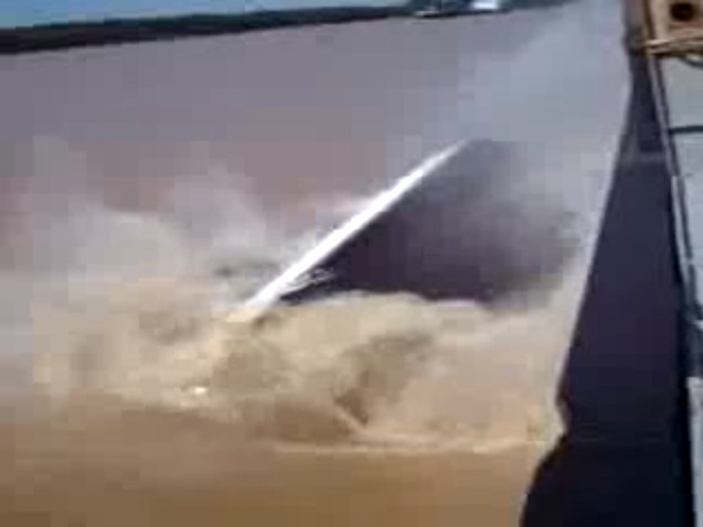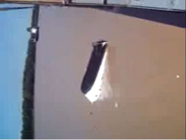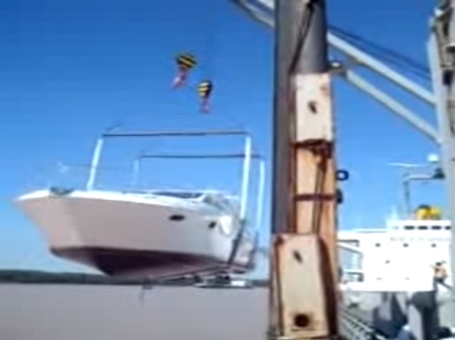 Nel video si vede la barca attaccata alla gru che viene lentamente calata in acqua, ma qualcosa va storto, forse la gru cede, e l’imbarcazione entra nell’acqua scura capovolta e solleva una grande onda prima di rovesciarsi completamente. La disperazione di costruttori e proprietario, nel vedere un milione di dollari letteralmente andare a picco ancor prima di aver solcato il mare, deve essere stata davvero alta.