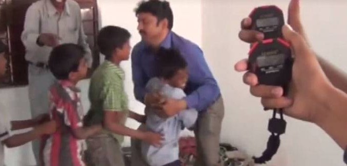 HYDERABAD – Krishna Kumar è noto per essere entrato già tre volte nel Guinness dei Primati. Ora lo ha fatto di nuovo decidendo di abbracciare 79 persone. Si tratta di ragazzi che studiano nella scuola della città iindiana di Hyderabad: Kumar, in realtà ne ha abbracciati 83: i giudici del Guinness presenti sul posto con i cronometri, hanno però ritenuto che alcuni “abbracci” erano più simili a delle “prese al collo”.