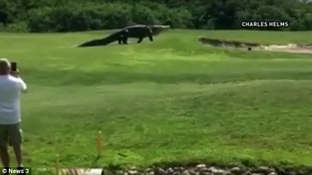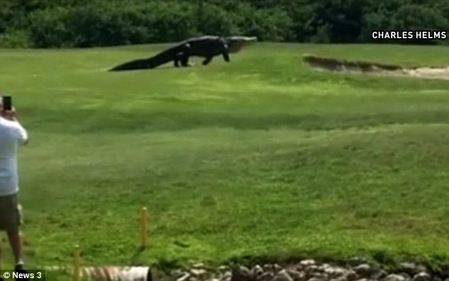 PALMETTO – Gli amanti del golf che si ritrovano a Palmetto in Florida, lo scorso fine settimana hanno pensato di trovarsi sul set di Jurassic Park. Domenica, un giocatore di golf ha ripreso un alligatore da 350 chili che passeggiava sul prato del Buffalo Creek Golf Course.