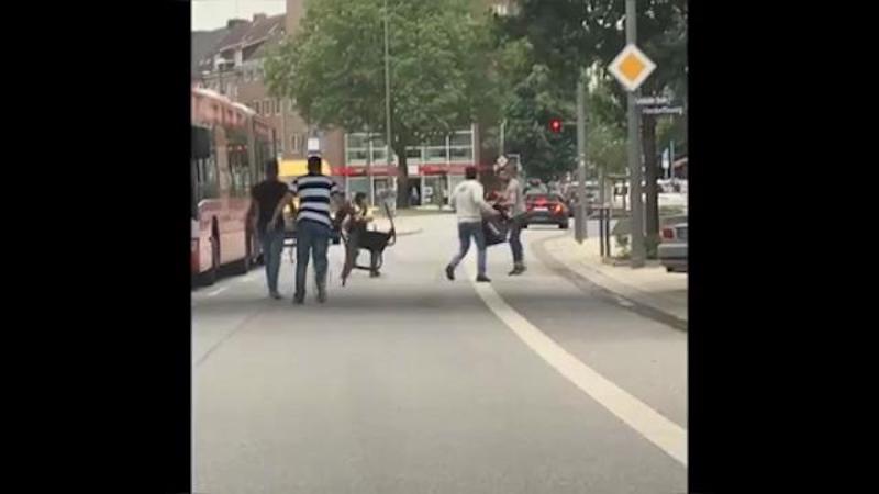 YOUTUBE Amburgo, passanti inseguono il killer col machete e lo prendono a sediate