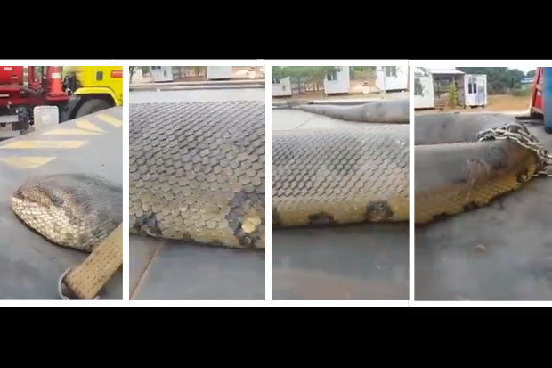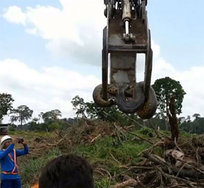 ALTAMIRA – Alcuni lavoratori che stanno costruendo una diga ad Altamira, nello Stato brasiliano di Pará, trovano un’anaconda gigante che pesa 400 kg ed è lunga circa 10 metri. Per spostare il serpente, i dipendenti della ditta di costruzione usano una escavatrice.