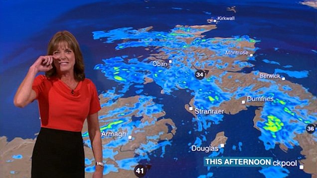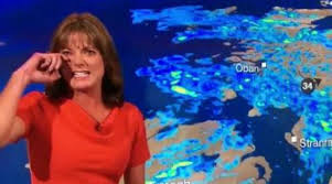 Il presentatore del telegiornale le chiede se sta bene e non riesce a riportare la situazione alla normalità. La Lear, iniziando le previsioni si era asciugata le lacrime ed aveva detto: “Cercherò di controllarmi, perché non è una cosa da ridere il tempo in Scozia oggi”.