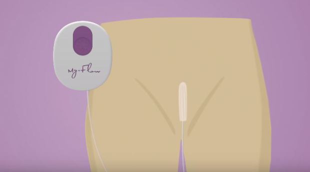 My flow consiste in un assorbente interno con un filo particolarmente lungo al termine del quale c’è un sensore bluetooth che può essere attaccato alla vita dei pantaloni, della gonna o delle mutandine e manda un segnale sul vostro smartphone quando è arrivato il momento di cambiare l’assorbente.