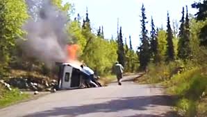 ANCHORAGE – Ad Anchorage in Alaska, un’auto si ribalta al lato della strada. Il guidatore resta intrappolato con il braccio incastrato. La polizia arriva e, grazie all’aiuto dei passanti riesce ad alzare l’auto quanto basta affinché l’uomo riesca a libeare il suo braccio. Tutto ciò avviene mentre le fiamme si stanno sprigionando dalla vettura.