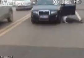 La donna era stata fermata dalla polizia stradale in Cina. La signora ha cominciato a gridare e a gesticolare. Ha prima afferrato la afferrato la porta, ma ben presto ha l’equilibrio finendo a terra. Fortunatamente per lei e per gli altri automobilisti, l’auto poco dopo si è fermata. Il filmato si chiude con la donna che guarda l’auto con un’aria sconsolata. La città in cui è accaduto questo bizzarro incidente non è stata resa nota. Il video lo pubblica il Daily Mail.