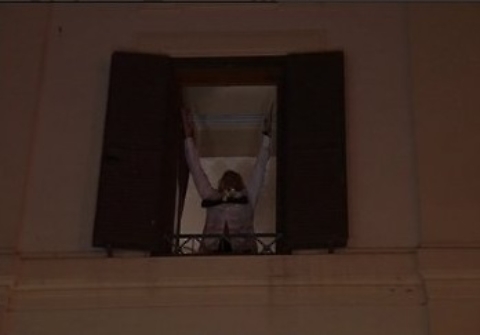 E direttamente dalla finestra del suo albergo ha mostrato tutto il suo godimento. Come? Prima mostrandosi con le braccia al cielo, e poi brandendo una stampella per gli abiti (un appendino, appunto). Un messaggio, chiarissimo, recapitato a Matteo Renzi.