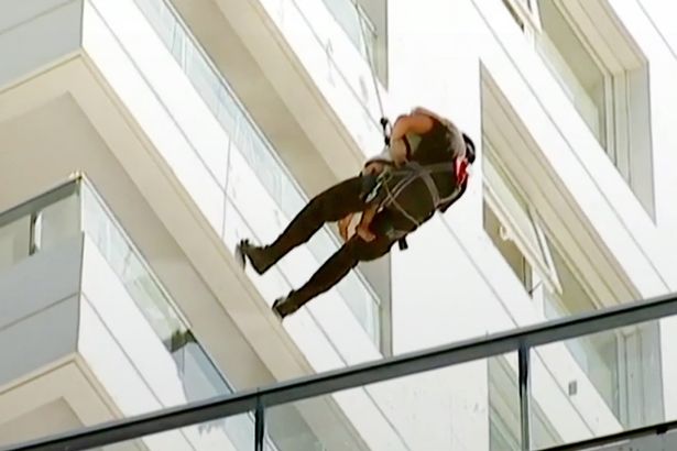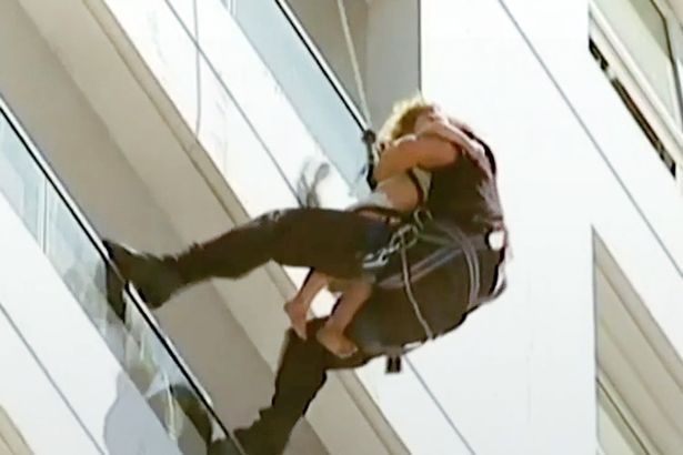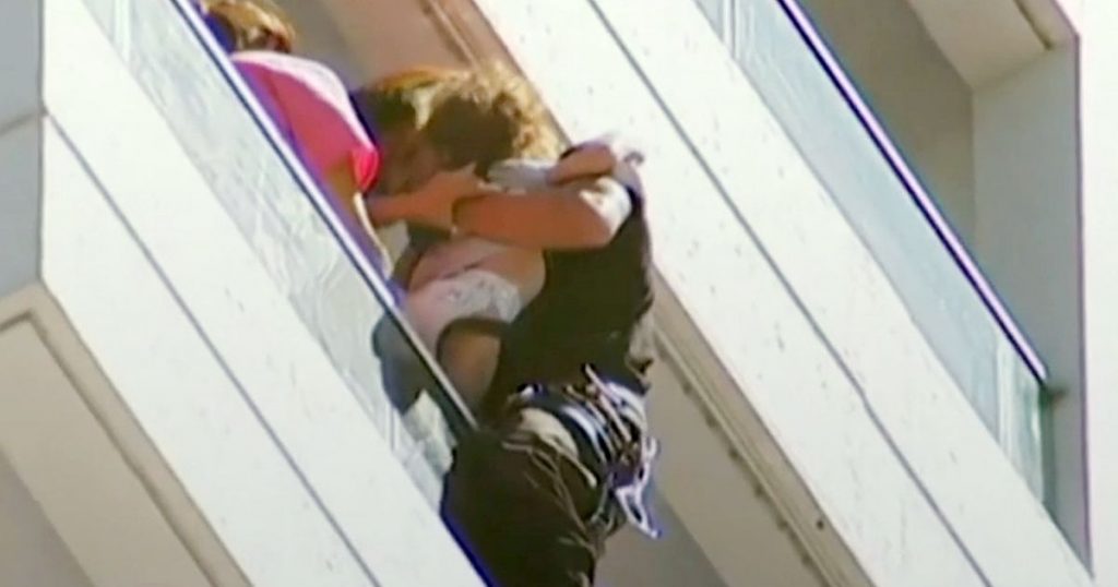 BUENOS AIRES – Una bambina rimasta intrappolata dalle fiamme del suo appartamento è stata salvata da un pompiere che si è calato dal tredicesimo piano di un edificio in fiamme a Buenos Aires, in Argentina. Tra le due braccia mentre scendeva, il pompiere teneva la piccolina.