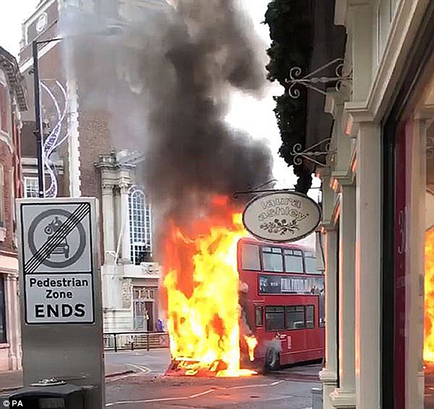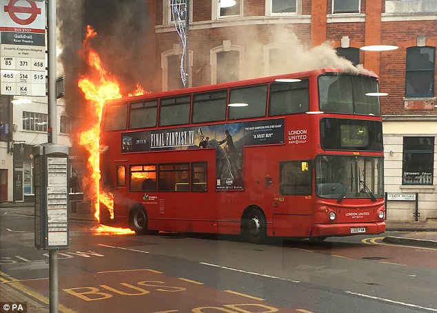 LONDRA – Un autobus a due piani ha preso fuoco a Londra. E’ accaduto a Londra intorno alle 9 di mattina di oggi 2 dicembre: l’autista è finito in ospedale, intossicato dal fumo. Il mezzo che ha preso fuoco è della linea 371 che viaggia nella zona di Kingston a sud-ovest della capitale britannica. Il bus a due piani che trasportava 350 litri di carburante ha cominciato a prendere fuoco nella parte posteriore: i passeggeri sono stati fatti scendere e i pompieri sono intervenuti in tempo, impedendo che il bus potesse esplodere.